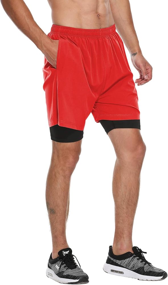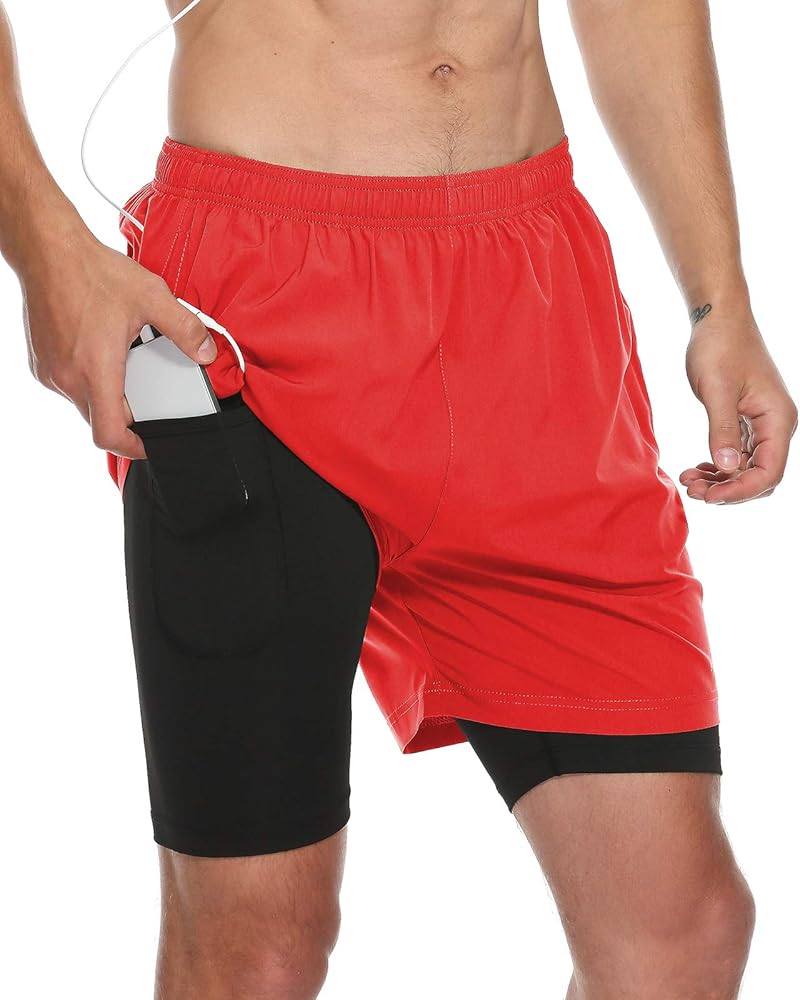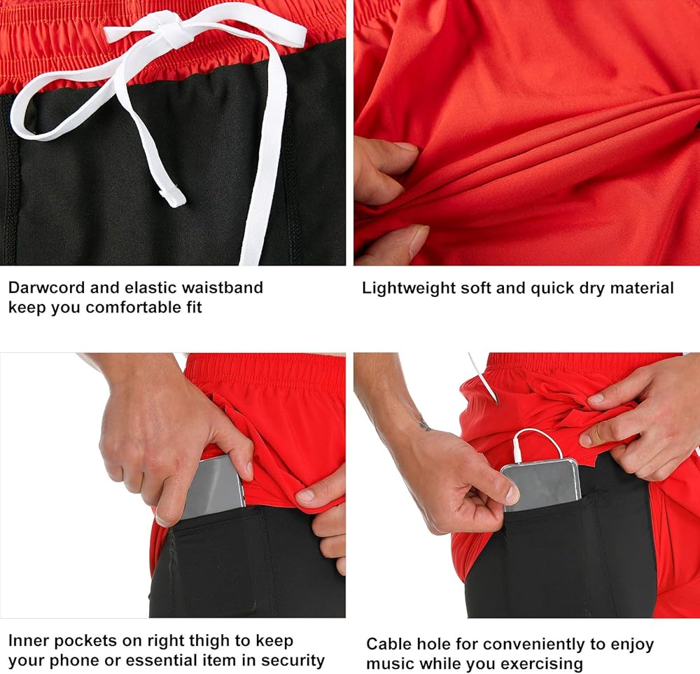 تصميم 2 في 1: شورت رياضي للرجال مع بطانة ضغط مرنة لملاءمة محكمة توفر الدعم لعضلات الفخذ دون احتكاك.