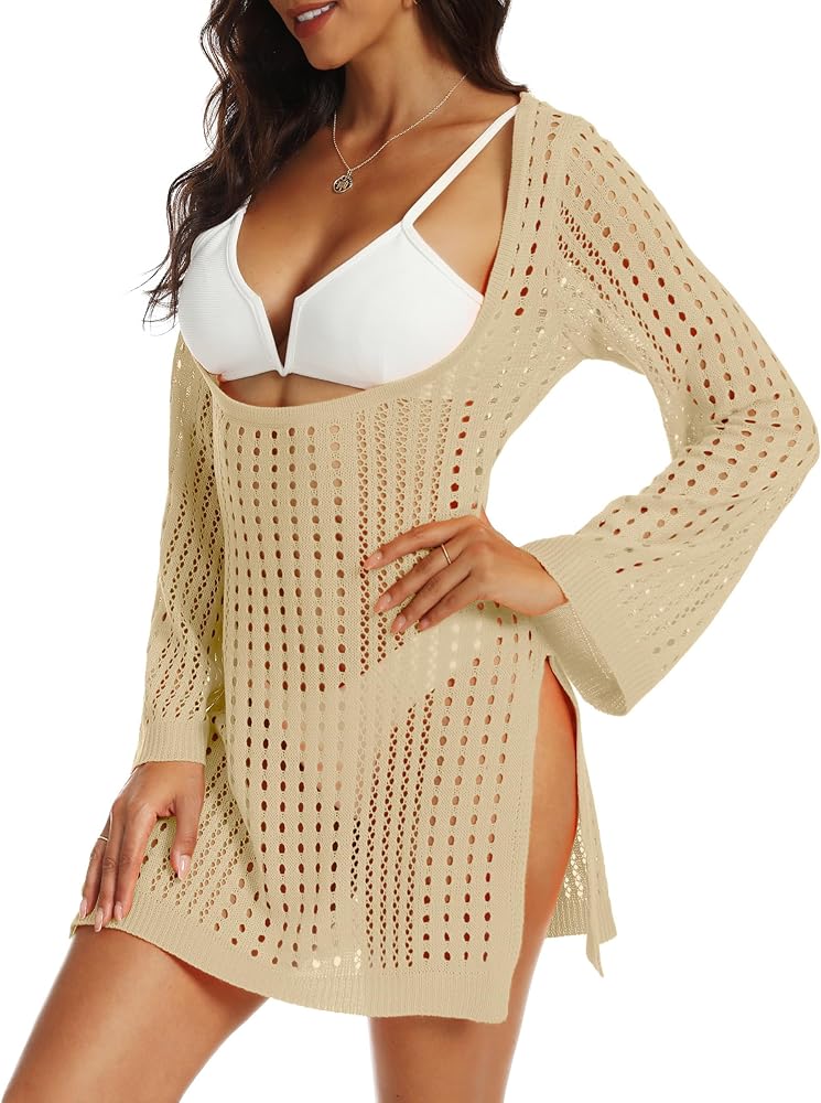 الجوف أوت: هناك طريقتان مختلفتان لارتداء هذا الفستان المثير بتصميم الكروشيه المجوف - غطاء كروشيه عادي وقمصان أنيقة بدون أكتاف. احتضن الرقي، وأشع مشاعر آلهة الشاطئ. ارفع أسلوب عطلتك مع هذه القطعة الأساسية.
