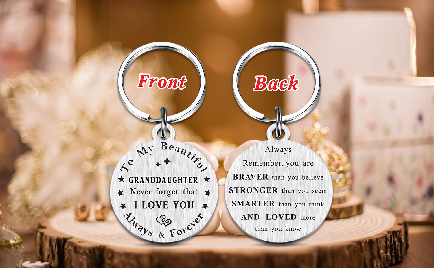 Granddaughter Gifts, Beautiful keychain gift engraved with:" To my granddaughter, never forget that I love you Always & forever, You Are Braver Than You Believe Stronger than you seem, and Smarter than you think, and Loved more than you know" Make it a good gift for your granddaughter grandkids