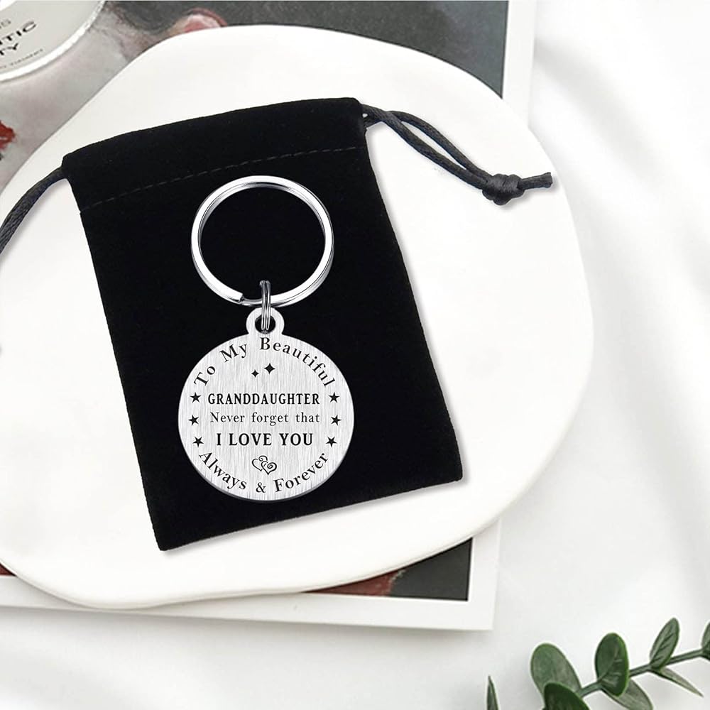 Granddaughter Keychain, Key Ring Diameter 1.2 inch, Pendant Diameter 1.4 inch, made of top stainless steel material, resistant to corrosion, hypoallergenic and and won't tarnish