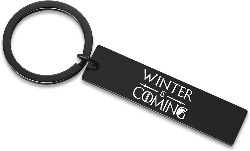 TV Show Inspired Funny Key Chain - Winter Is Coming black key chain is inspired by TV Show Game of Throne. The purpose is to give the fans of the TV series the Game of Throne as an interesting gift or collection for decorating keys or collecting, it also nice holer for car, backpack, phone pendant and so on. Black Key Chain - The black key chain is more conspicuous and easy to carry and find. The words "winter is coming" on the key chain are clear and easy to read. The size is about 2inX0.5in. Great gifts for Game of Throne lover and fans. Educational Gift for Children Fans - For graduates who are about to graduate, graduation is the beginning of entering society. There are always many difficulties in entering the society, which is undoubtedly the winner is coming However, darkness and difficulties can always be overcome. Please face Winter bravely. This is the most interesting and educational gift for students, daughters, sons and friends.