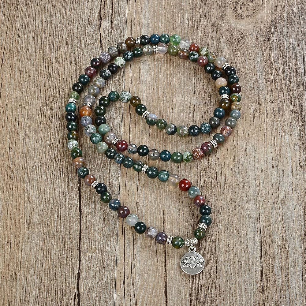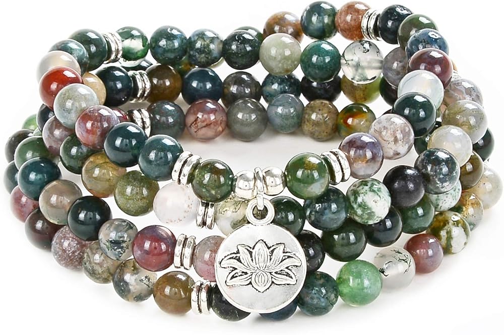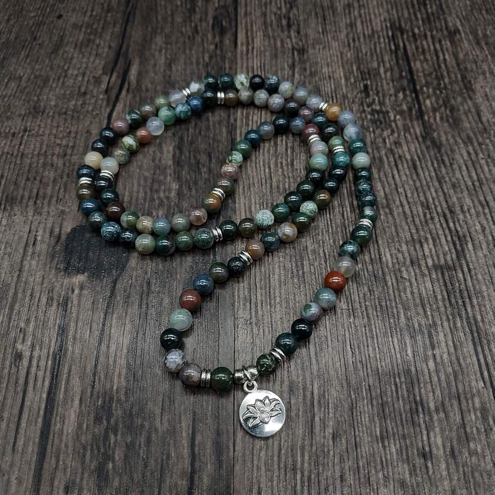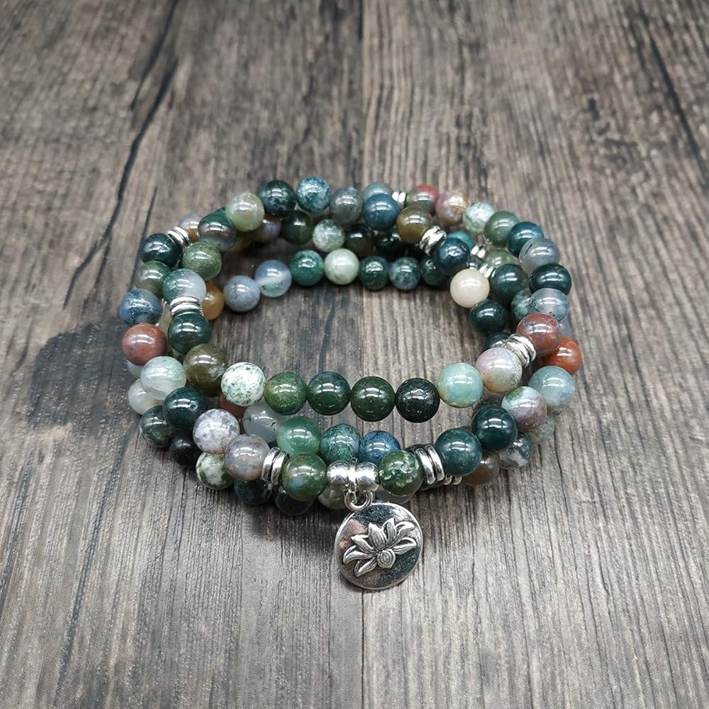 ❤ المواد - مصنوعة من خرز الحجر الطبيعي مع سحر اللوتس. مثالية لليوجا أو التأمل أو الصلاة أو مجرد مجموعات مجوهرات يدوية الصنع.