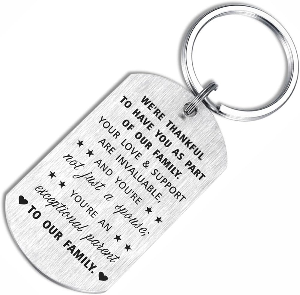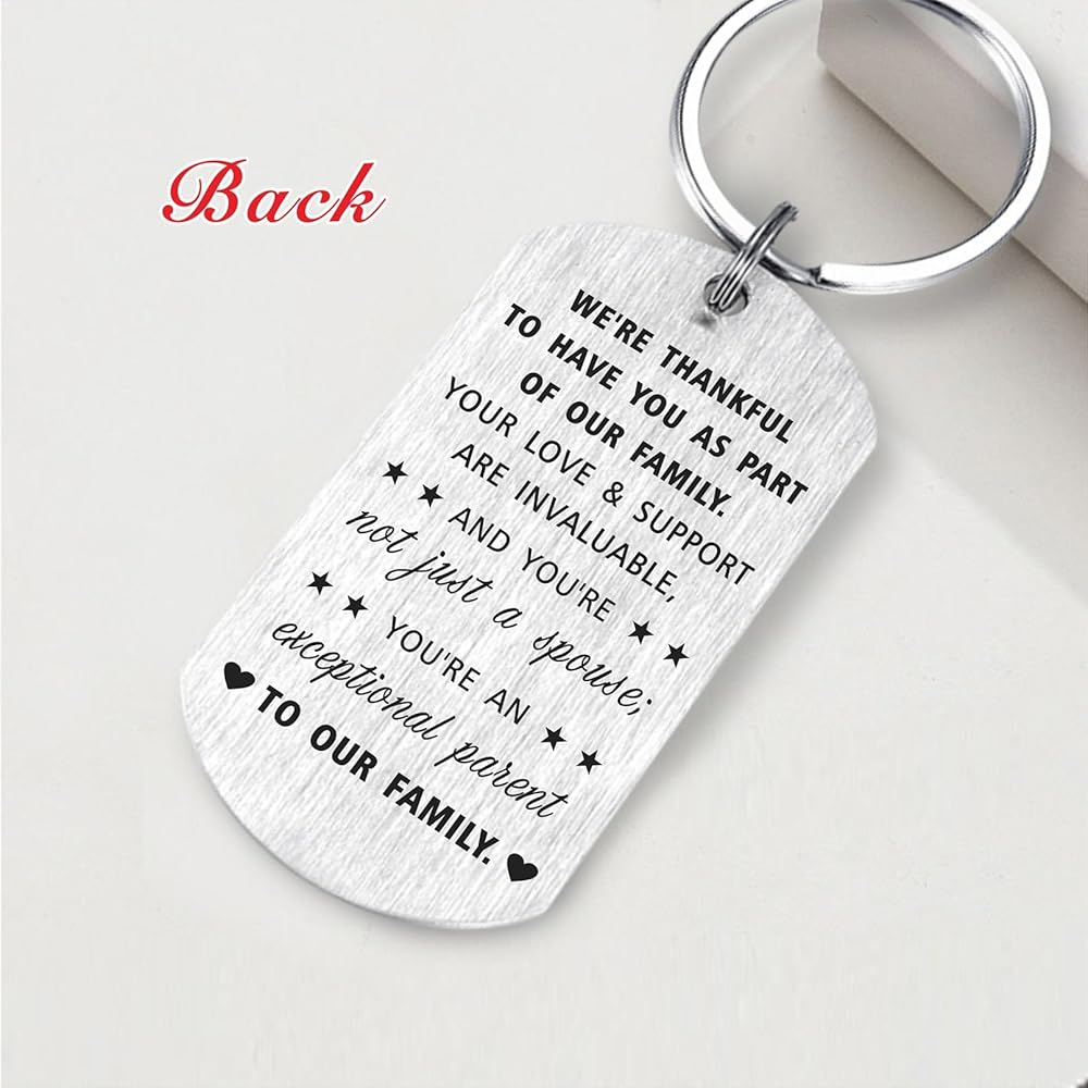 This keychain serves as a meaningful way to express your gratitude and admiration for your daughter-in-law, recognizing the significant role she plays in your family. Crafted with meticulous attention to detail and using high-quality stainless steel materials, it offers both a heartfelt message and a durable, stylish accessory. It's a wonderful gift to show your appreciation on special occasions or simply to let her know how much she means to your family. Sending your daughter in law this keychain, she will love and cherish it