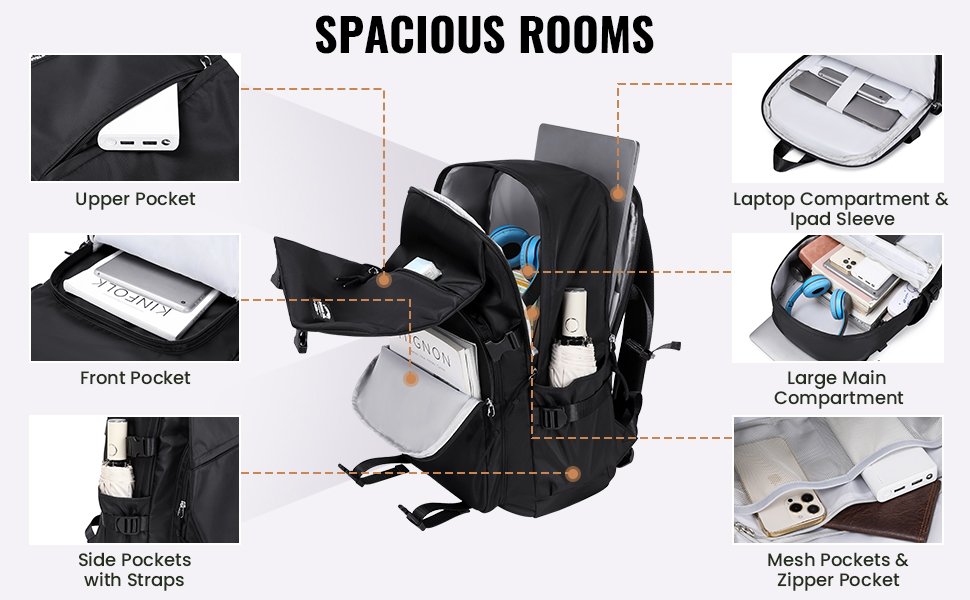💻【مقصورة الكمبيوتر المحمول والآيباد】حقيبة ظهر الكمبيوتر مصممة خصيصًا مقصورتين مقسمتين فريدتين في الخلف: حجرة كمبيوتر محمول مبطنة (تناسب أجهزة الكمبيوتر اللوحية مقاس 15.6 بوصة)، وحجرة iPad مبطنة (تناسب جهاز iPad مقاس 9.7 بوصة). جيب خلفي مضاد للسرقة بسحاب، يحسن أمان مقتنياتك الثمينة.