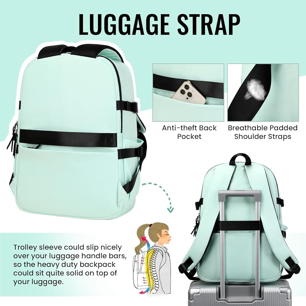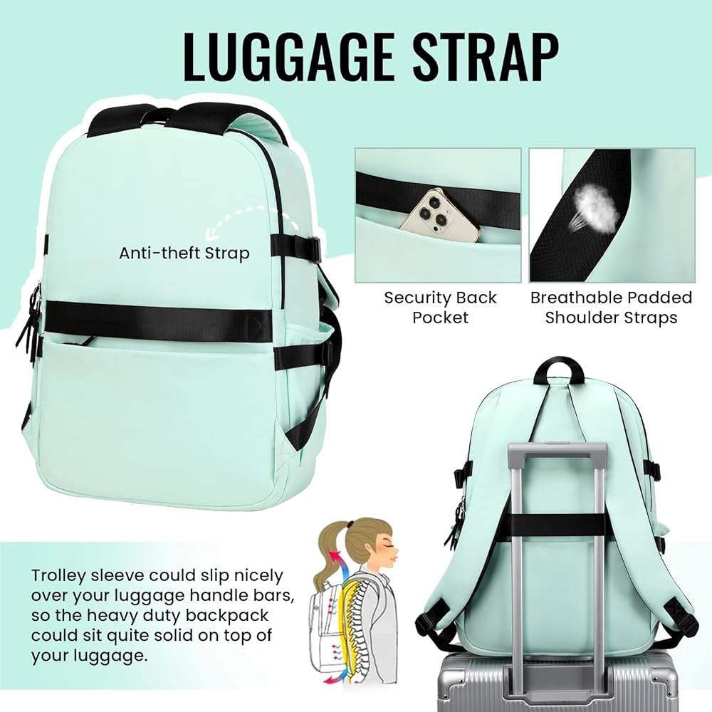 💯【تصميم مريح】 صُممت حقيبة الظهر الجامعية الخاصة بنا مع وضع الراحة والعملية في الاعتبار، وتتميز بثلاث ميزات فريدة: ①تصميم مريح على شكل حرف S يناسب الأكتاف بشكل مثالي. ②أحزمة كتف مبطنة وسميكة وقابلة للتنفس، ممتازة للتنفس وتبديد الحرارة. ③يمكن أن تنزلق حافظة العربة بشكل جيد على قضبان مقبض الأمتعة الخاصة بك، لذلك يمكن أن تكون حقيبة الظهر غير الرسمية ثابتة تمامًا فوق أمتعتك.