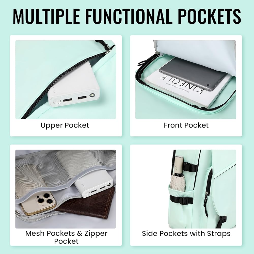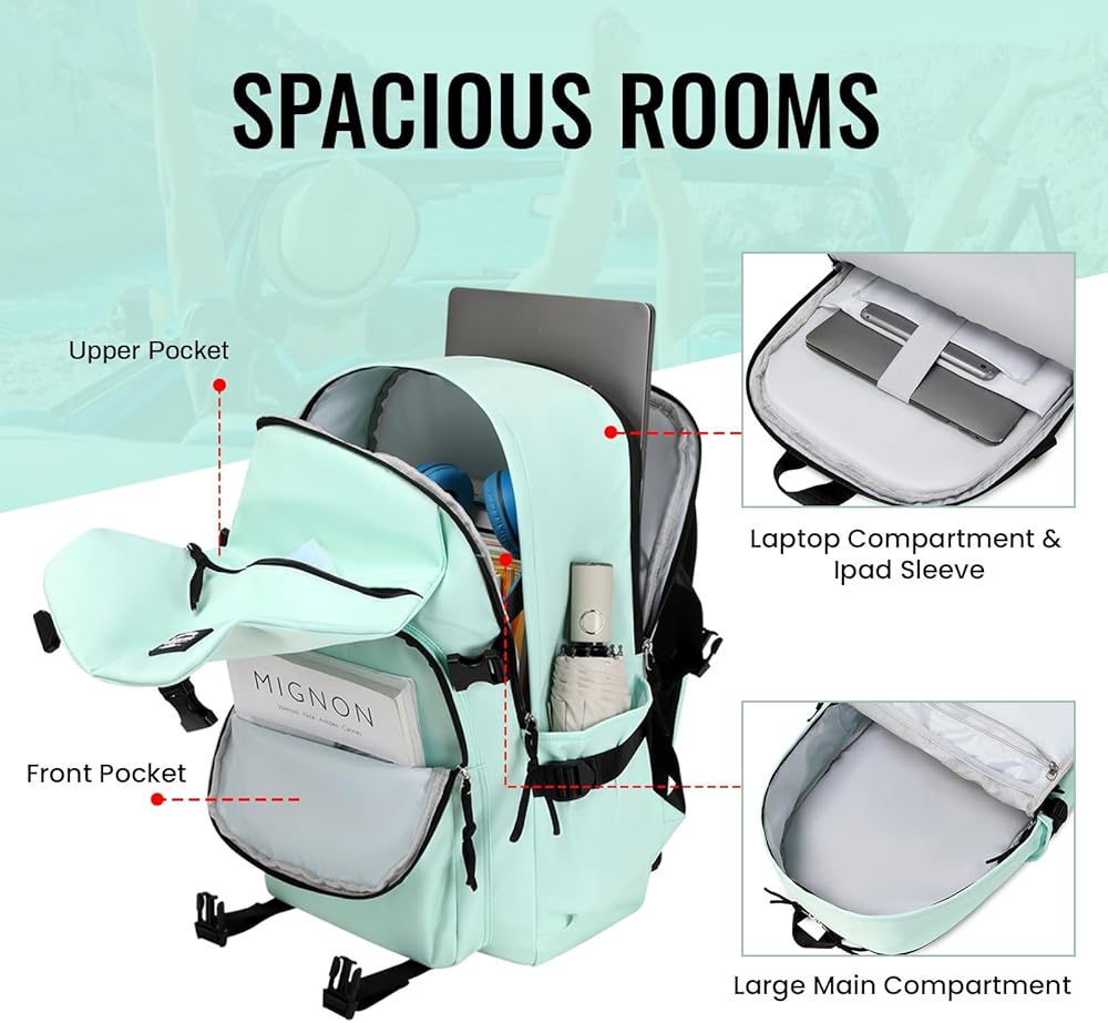 📚【سعة كبيرة】تحتوي حقيبة الظهر الجمالية على مساحة علوية لتخزين أغراضك المشهورة، ويسهل الوصول إليها. حجرة رئيسية كبيرة مع جيبين منزلقين وجيب واحد متوسط بسحاب. توجد حجرة وسطية لحمل كتبك ودفاتر ملاحظاتك. جيبان لزجاجة المياه على كلا الجانبين للشرب أو المظلة.