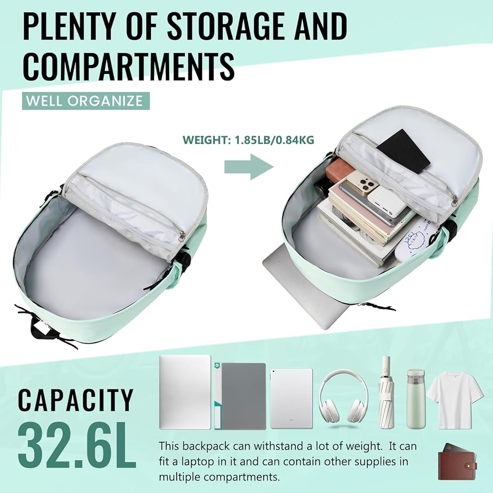 ☑️【شديد التحمل】الأبعاد: 18.9 × 7.87 × 13.38 بوصة (الطول × العرض × الارتفاع)، الوزن: 1.85 رطل/0.84 كجم، السعة: 32.6 لتر. حقيبة ظهر للسفر شديدة التحمل، تم اختبار تحملها حتى 44 رطلاً.