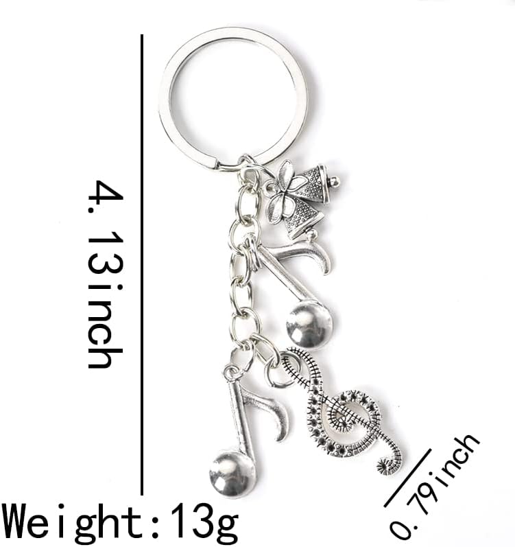 • سلاسل مفاتيح النوتة الموسيقية: سلسلة مفاتيح نوتة فريدة ورائعة، لا يمكن استخدامها فقط لمفاتيح السيارة ومفاتيح الأبواب وغيرها من العناصر، ولكن يمكن استخدامها أيضًا لتزيين حقيبة الظهر والحقيبة وغيرها من العناصر، مناسبة جدًا للرجال والنساء الذين يحبون الموسيقى