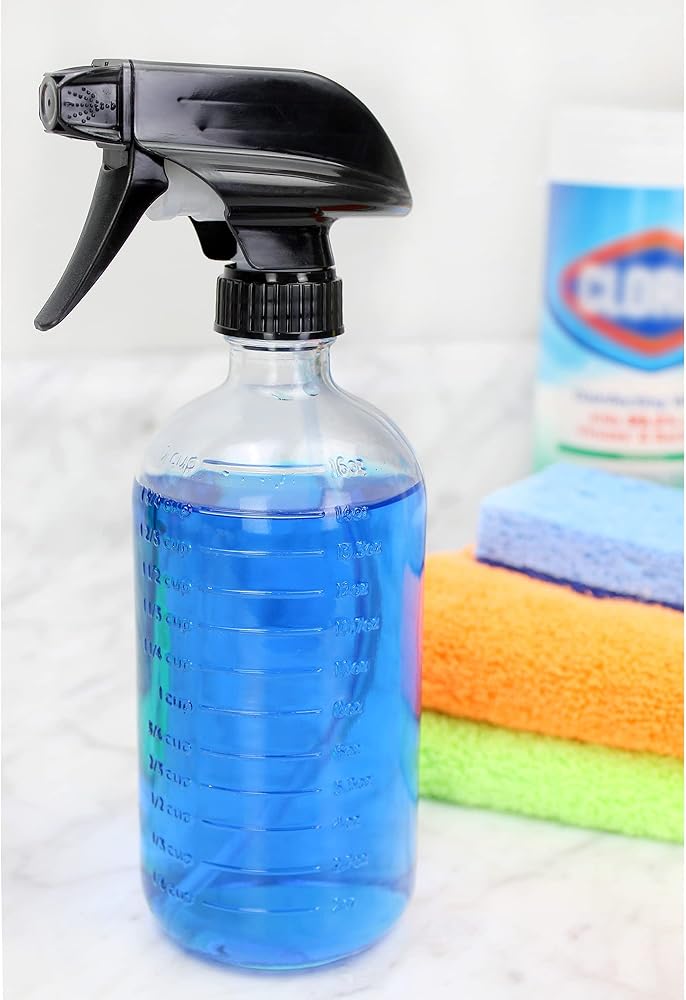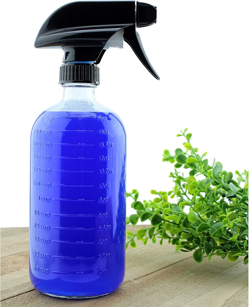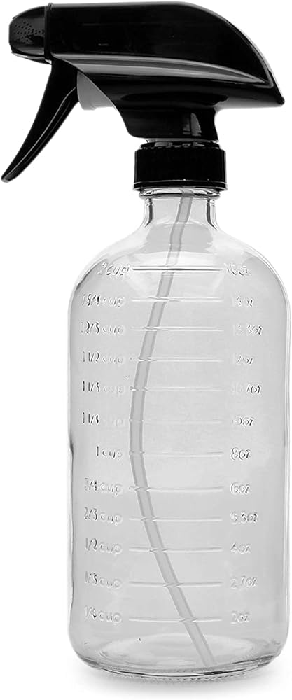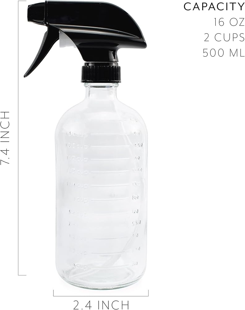 • زجاجات بخاخ زجاج شفاف بسعة 473 مل مع القياسات (عبوتان)؛ زجاجة بخاخ علامات متدرجة مع 3 إعدادات لرذاذ عالي التحمل والتدفق والإيقاف.