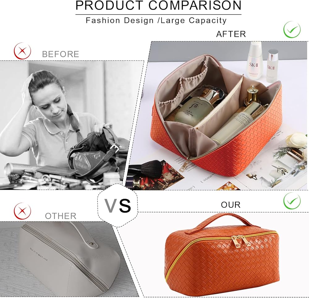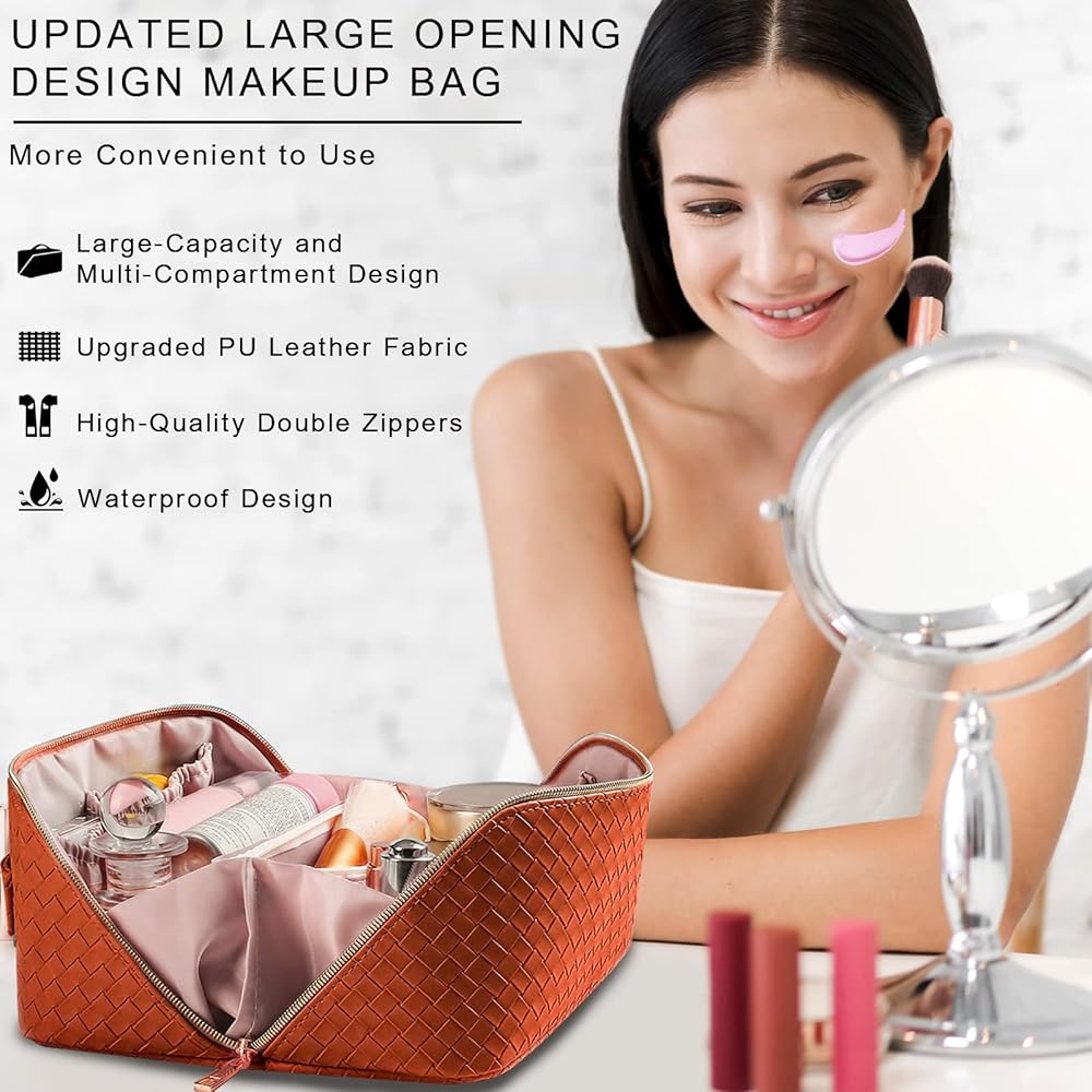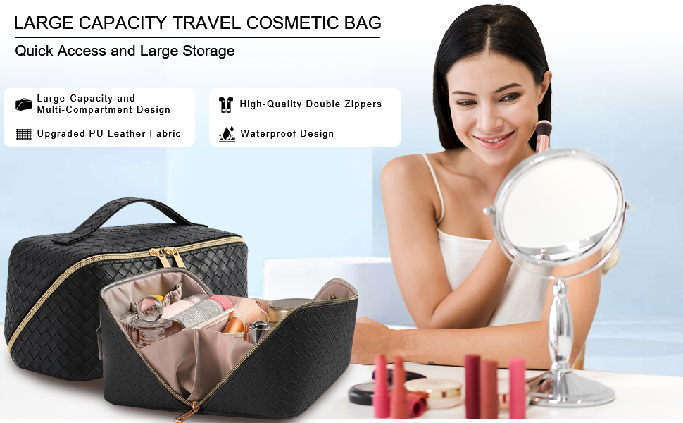 【ترقية حقيبة مستحضرات التجميل للسفر ذات سعة كبيرة】: حجم حقيبة المكياج: 9.5 × 4.7 × 4.7 بوصة. نحن نستخدم تصميمًا مفتوحًا كبيرًا بزاوية 180 درجة مع سحابات مزدوجة عالية الجودة لتسهيل الفتح والإغلاق. تم تصميم الجزء الداخلي من حقيبة مستحضرات التجميل بأقسام ومقصورات متعددة، يمكنها استيعاب جميع المستلزمات التي تحتاجها وفرزها بطريقة منظمة، حتى تتمكن من العثور عليها بسرعة! يوفر لك الكثير من الوقت.