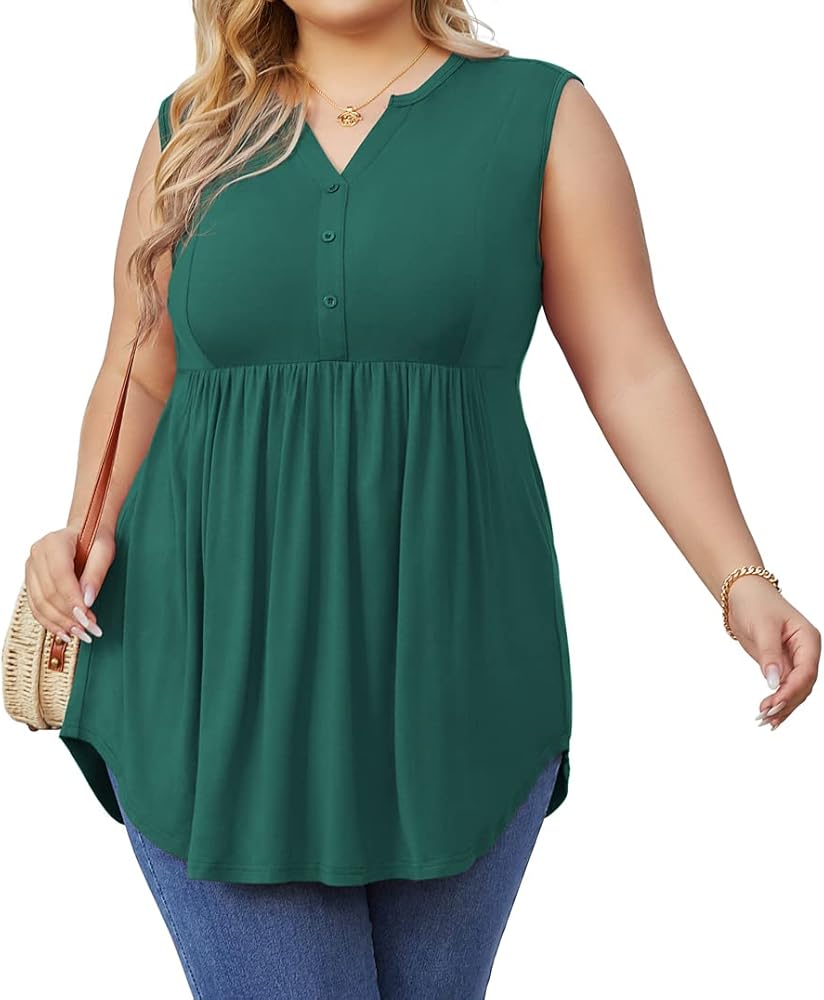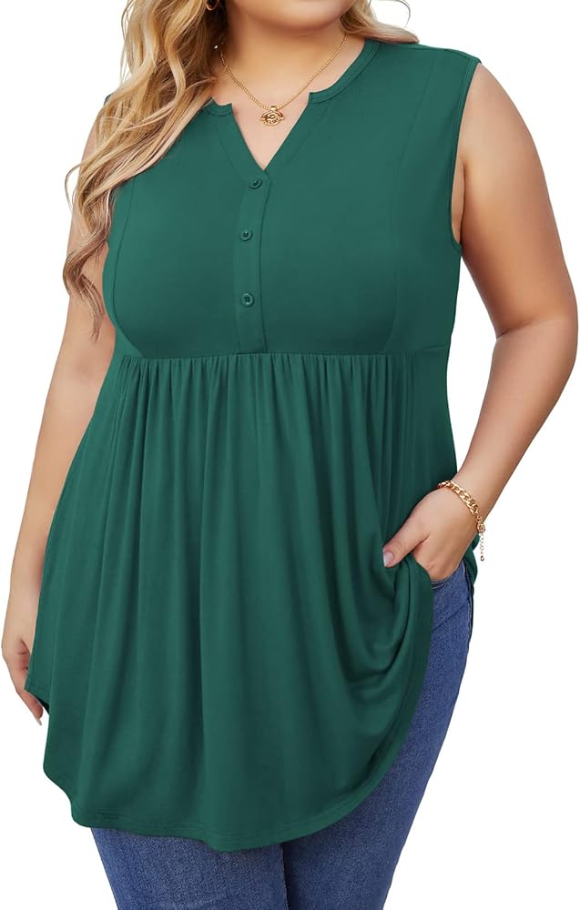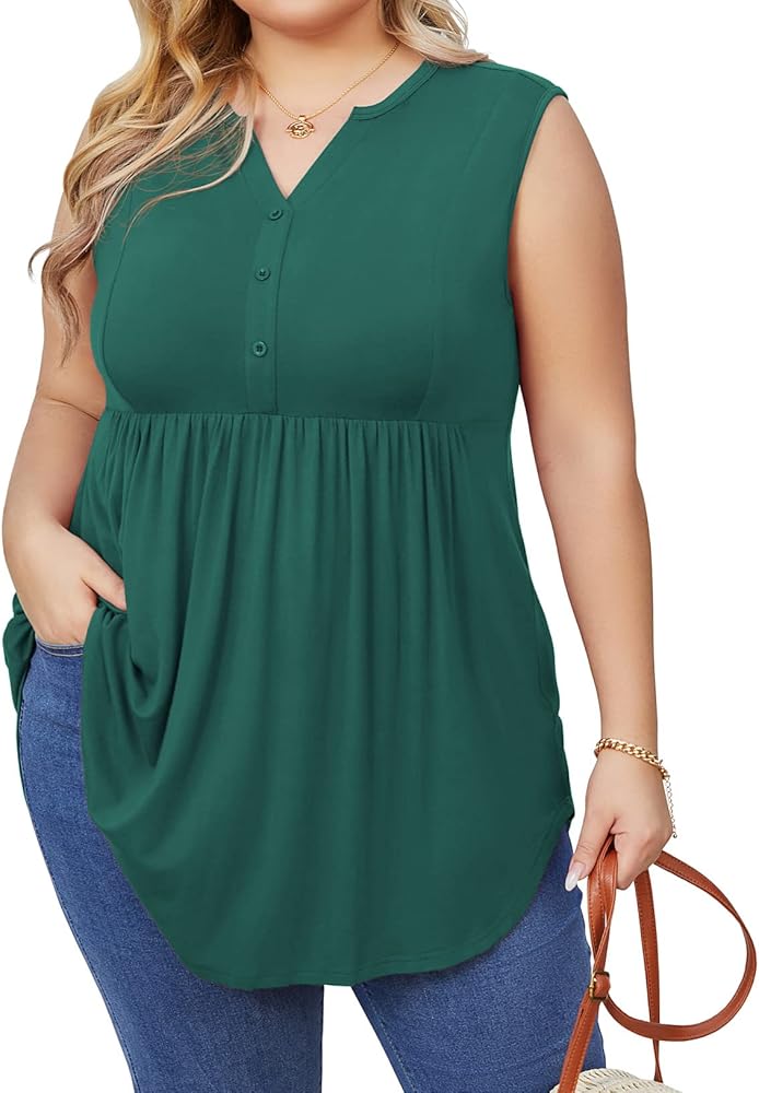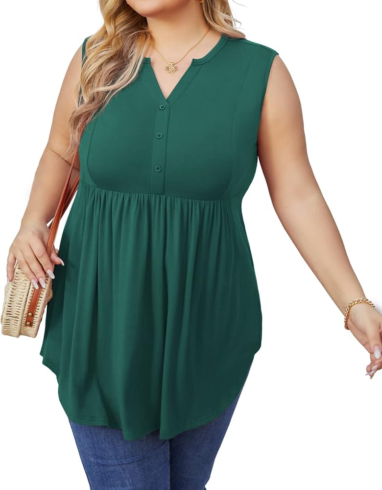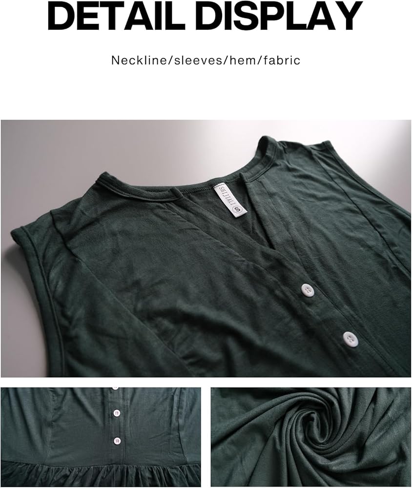 💕【المميزات】: بدون أكمام، رقبة على شكل حرف V مع 3 أزرار ثابتة، حاشية مكشكشة، مطوية من الأمام والخلف، تصميم فضفاض. خصر نسائي علوي وتفاصيل مطوية لتمنحك مظهرًا نحيفًا، خصر عالي مطوي يخفي بطنك، الطول المناسب يغطي المؤخرة.