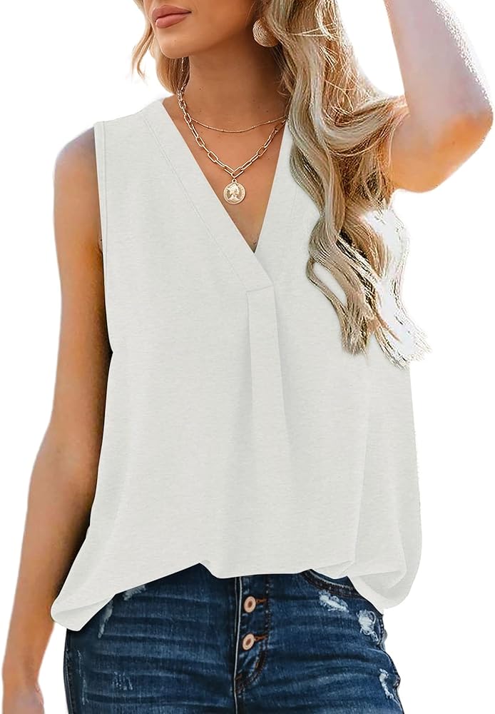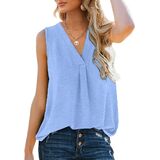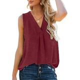 - قمصان بدون أكمام للسيدات فضفاضة، قمصان بدون أكمام، رقبة على شكل حرف V، مطوية، لون موحد، قمصان للسيدات