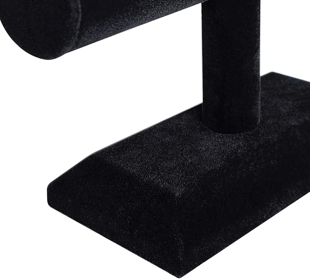 حامل سوار الساعة - مصنوع من الخشب المغطى بالمخمل الأسود.