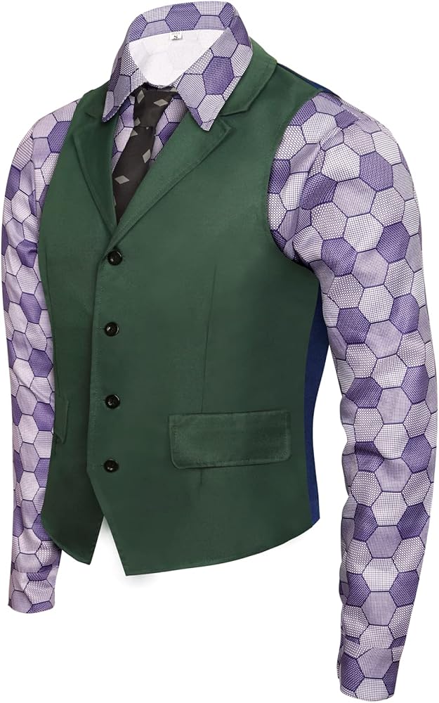 زي الهالوين جوكر للرجل الفارس قميص هيث ليدجر سترة وربطة عنق