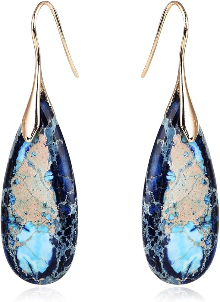 Turquoise Drop Earrings for Women, Blue/ Red/ Purple/ Orange Boho Teardrop Earrings with Unique Textured, Natural Emperor Stone Gemstone Dangle Earrings Jewelry Gift