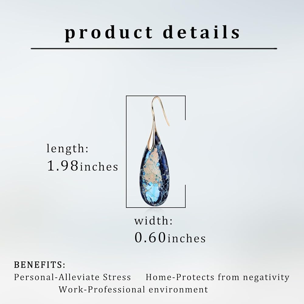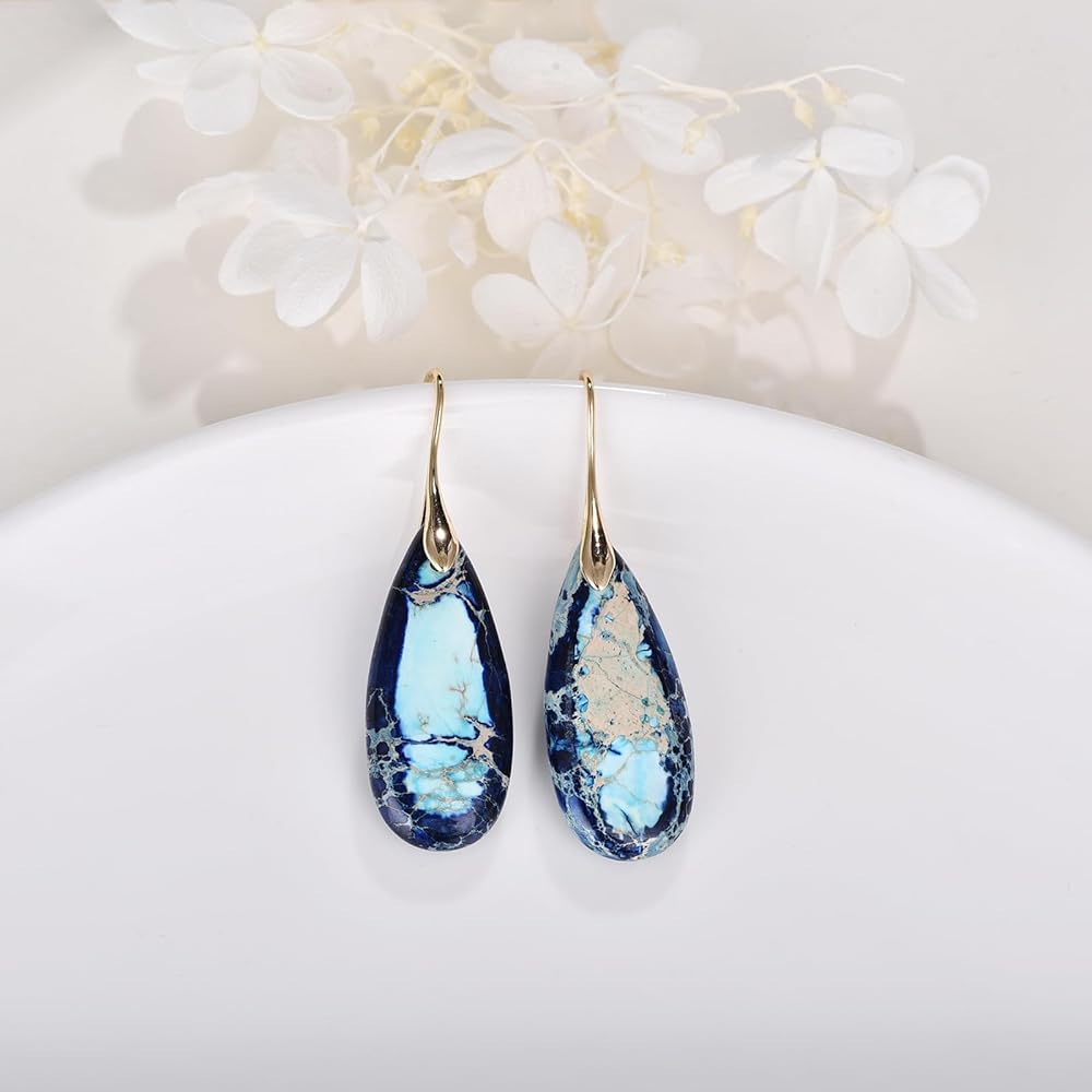 • ❤️【Natural Stone Teardrop Earrings】 Note that these turquoise drop earrings have no human intervention, so the texture of each emperor stone earrings is unique, and because it is a natural product, the actual product is more inclined to the color of the earth. Elevate your style with this vibrant and eye-catching boho earrings that will set you apart from the crowd.