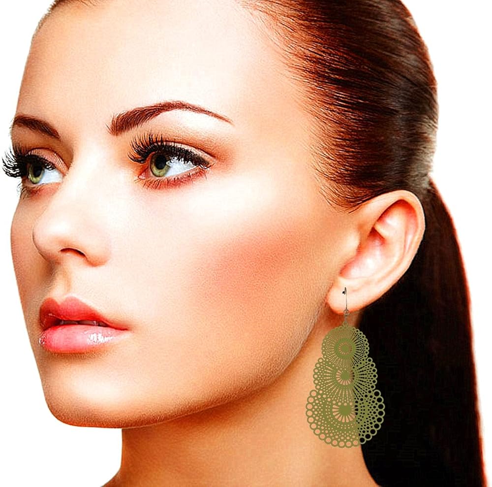 مصنوعة من سبائك معدنية عالية الجودة، ذات نوعية جيدة للغاية، ليس من السهل أن تنحني وتشوه، مواد صديقة للإنسان، أقراط لا تسبب الحساسية، مناسبة للأذنين الحساسة. عملية التجويف تجعل الأقراط خفيفة الوزن للغاية ولا تحمل عبء للارتداء.