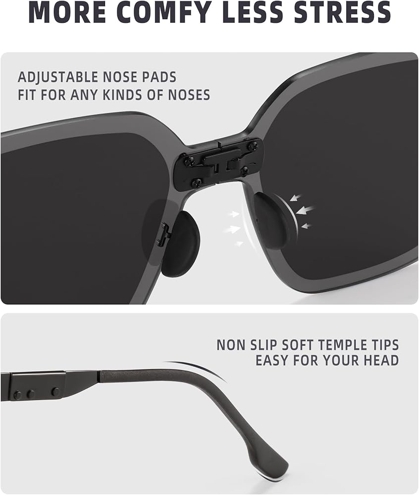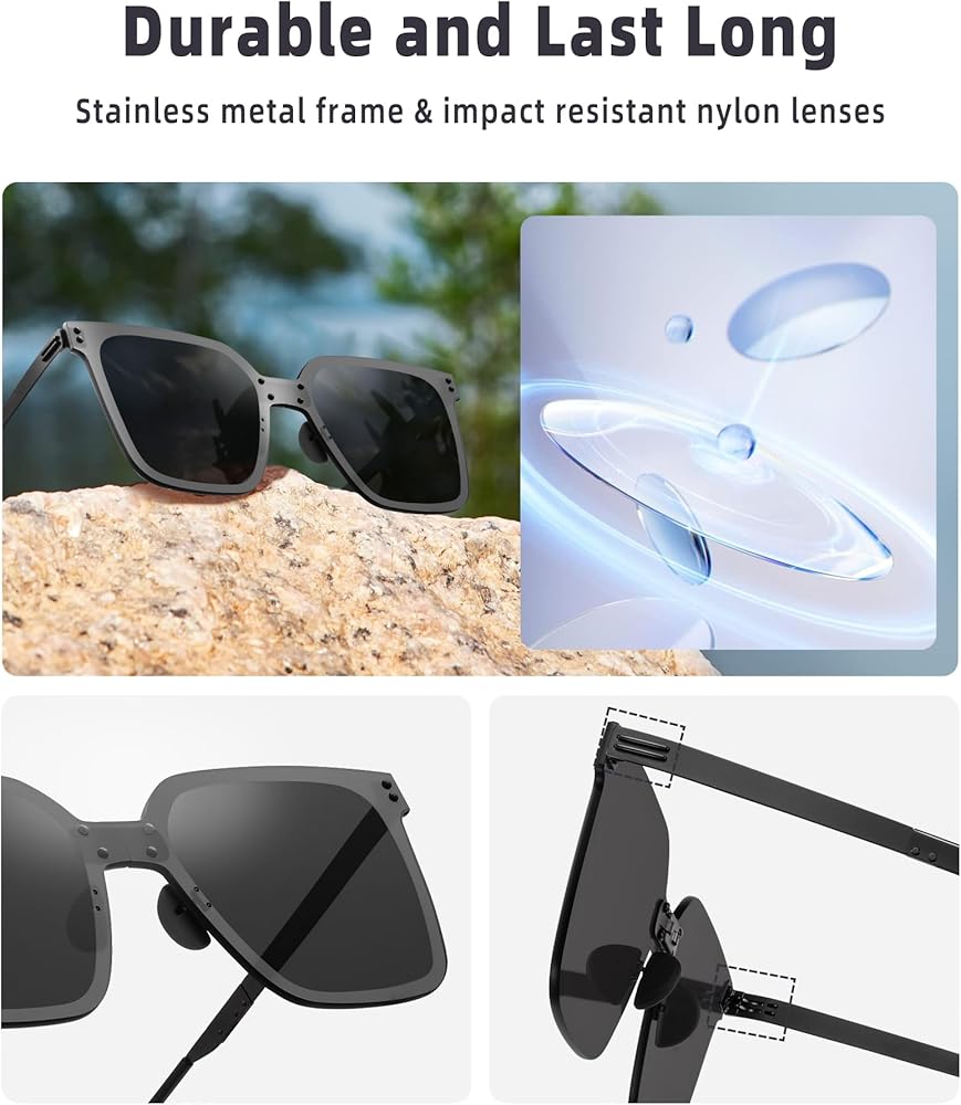 متينة - يمكن فتح هذه النظارات الشمسية المطوية وطيها 10000 مرة دون أن تنكسر. تتميز ستائرنا القابلة للطي بسهولة الحمل، ويمكنك ارتداؤها أثناء العديد من الأنشطة مثل السفر والقيادة والتنزه سيرًا على الأقدام وصيد الأسماك ولعب الجولف وما إلى ذلك.