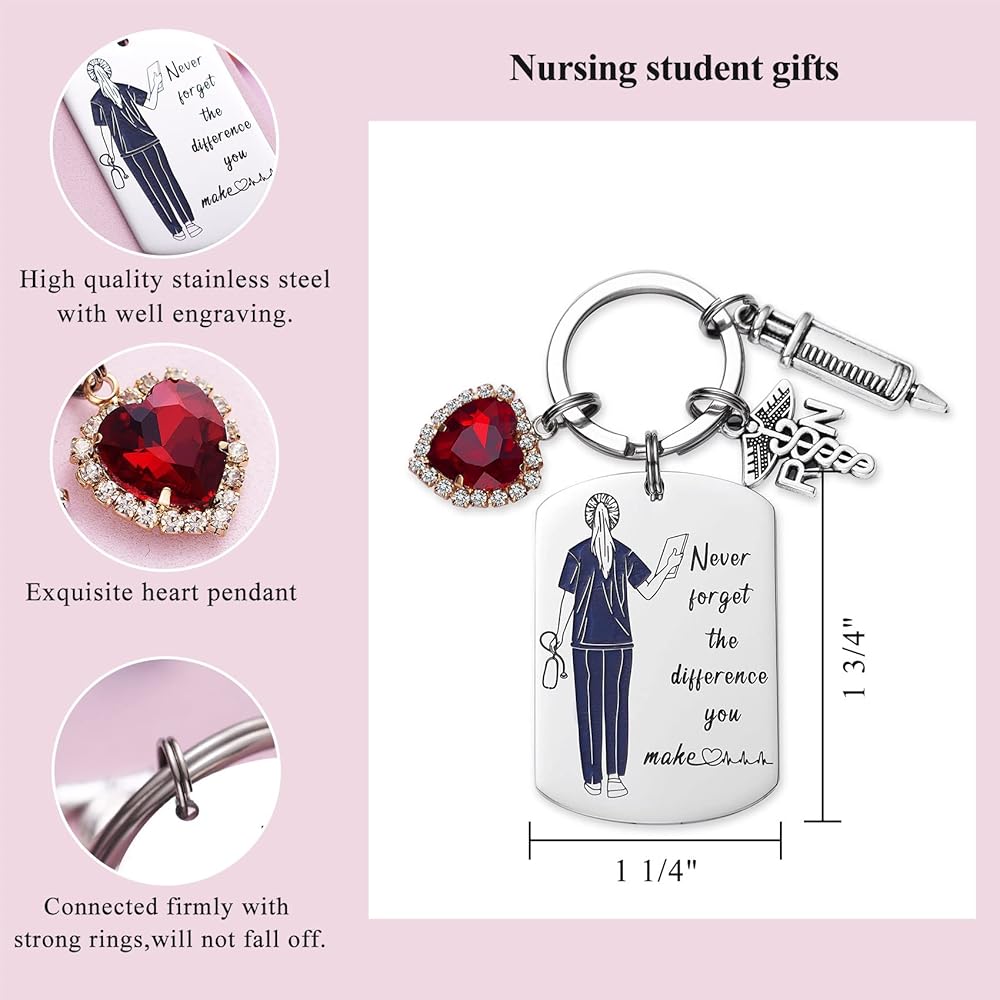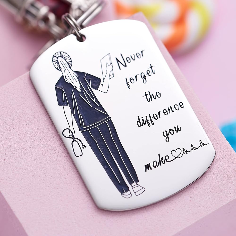هدايا ار ان للممرضات - سلسلة مفاتيح الممرضة اللطيفة محفورة بعبارة "Never forget the difference you make"، ستكون أفضل هدية للممرضة أو الممرضة أو طالبة التمريض أو والدتك، أو العمة، أو الابنة، أو ابنة الأخ، أو الأخت، أو أفضل صديق، أو صديقتك المفضلة التي هي ممرضة.
