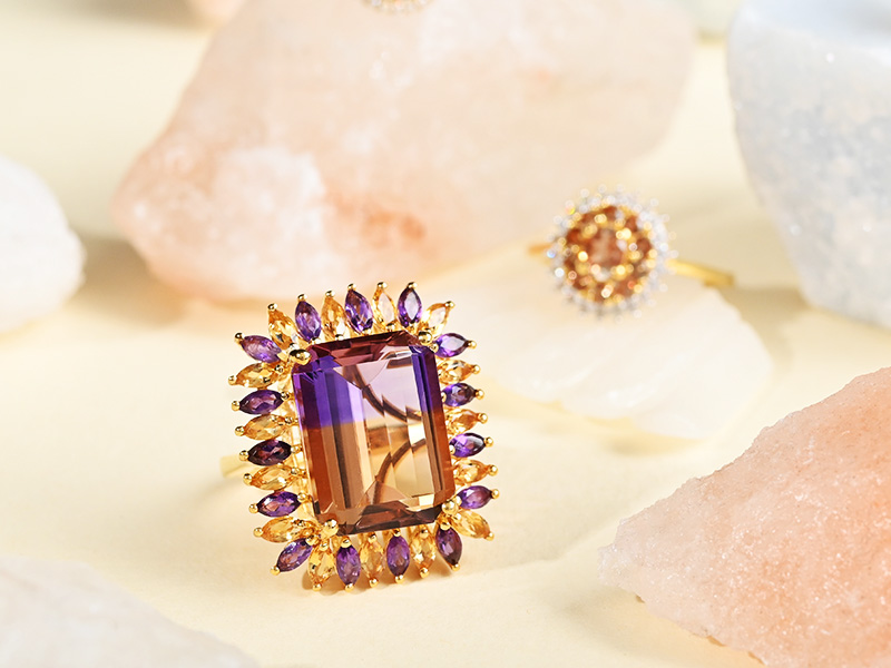 لمسة من الفن: يتميز الحجر الكريم الجميل بعمل معدني فني ممتاز
