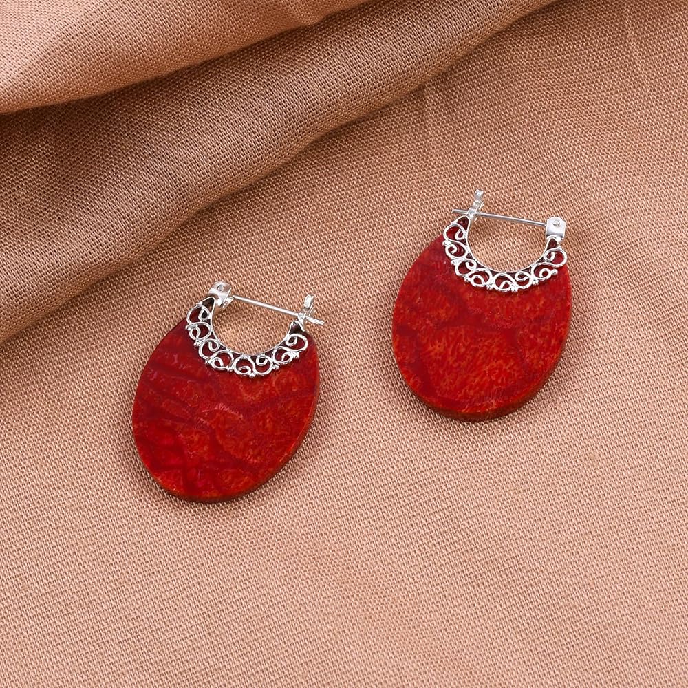 درجات اللون الأحمر المزهرة: هذه الأقراط مرصعة بالمرجان الفاخر، تشع بعض الألوان الحمراء المزدهرة