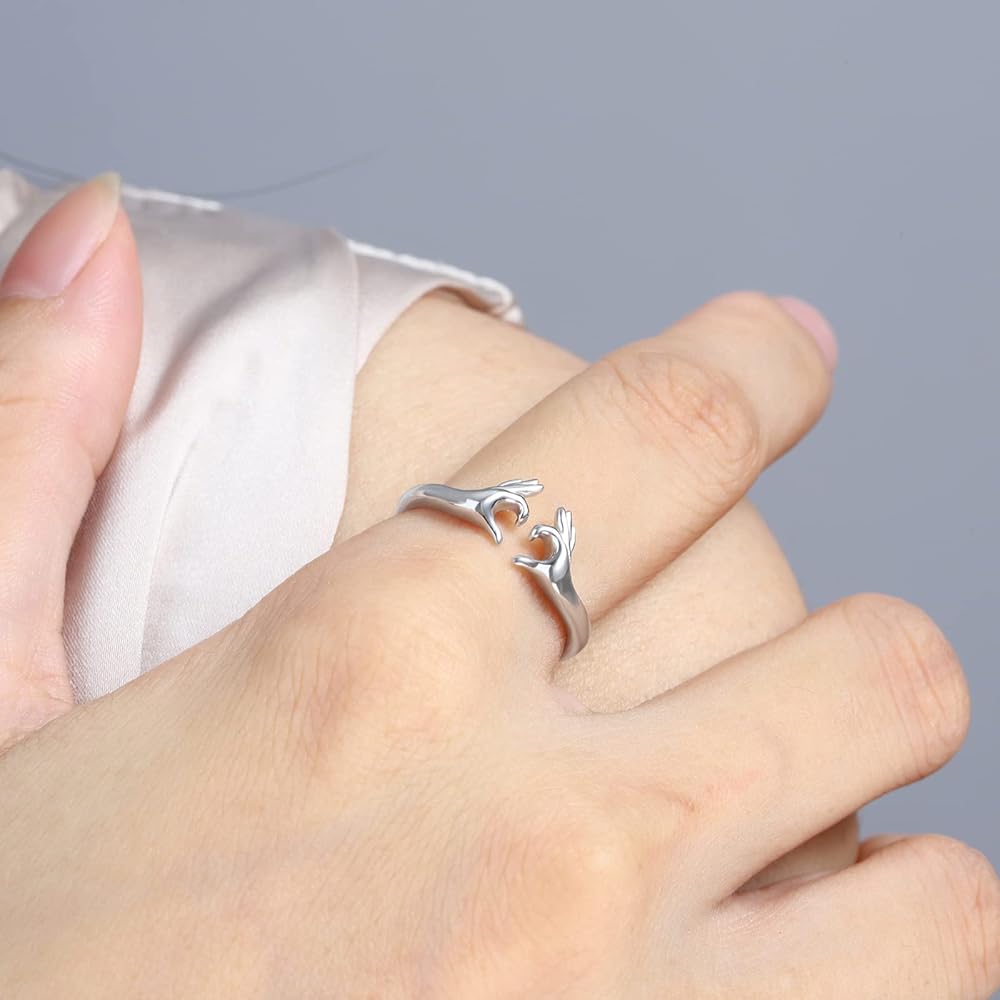 خاتم العناق من الفضة الإسترلينية قابلة للتعديل: