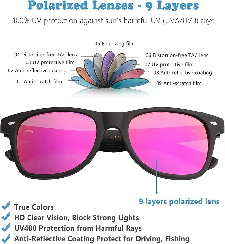 هل هم مستقطبون؟ نعم، نظارتنا الشمسية الخشبية مستقطبة، والعدسات مصممة خصيصًا، وتوفر حماية 100% من الأشعة فوق البنفسجية، وتحافظ على عينيك محمية بالكامل من الأشعة فوق البنفسجية الضارة والأضواء القوية.