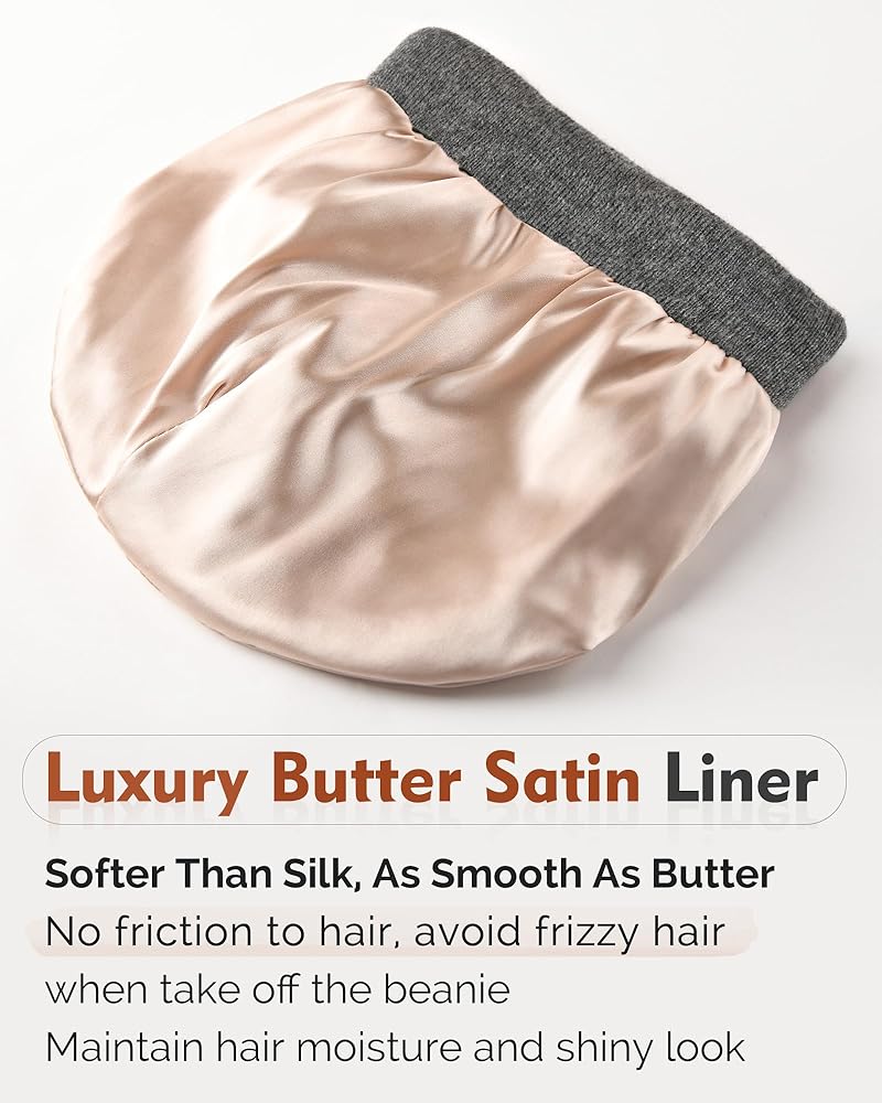 بطانة ناعمة من الساتان: شعرنا عرضة للتلف في كل مرة نخرج فيها إلى الرياح والشمس والبرد. حافظ على خيوطك بارتداء قبعة صغيرة مبطنة بالساتان! الساتان مثالي لحماية الشعر لأنه لا يمتص الكثير من الرطوبة أو يسبب الكثير من الاحتكاك مثل المواد الأخرى، مثل الصوف والقطن. لا تعد منتجاتنا رائعة فقط لتقليل التجعد والتقصف، ولكنها أيضًا قابلة للتمدد لاستيعاب الشعر الكبير؛