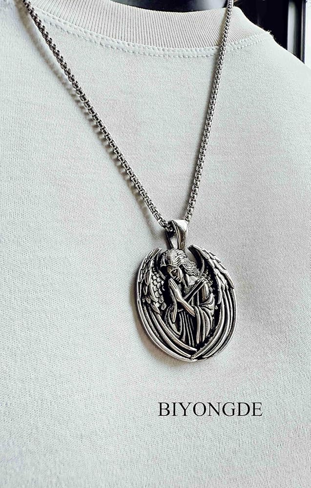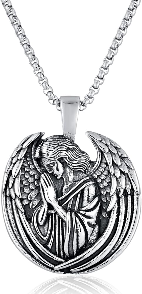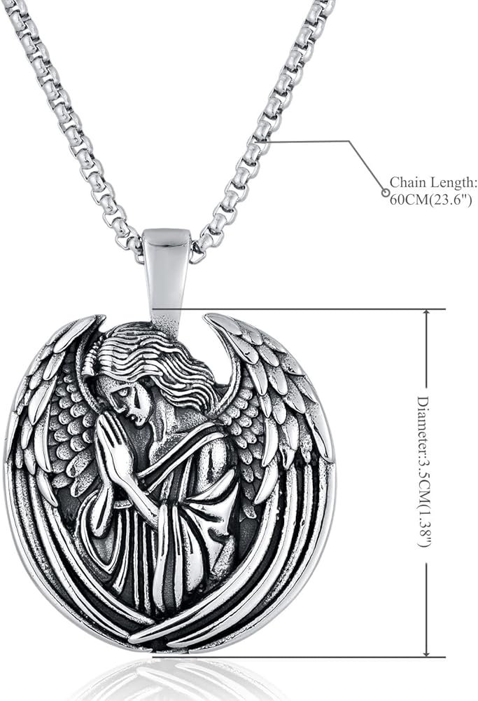 الفولاذ المقاوم للصدأ من الفولاذ المقاوم للصدأ الصلاة ميدالية ملاك الملاك ، تميمة دينية فضية عتيقة ، صلاة مع قلادة قلادة الأجنحة ، المجوهرات المسيحية الكلاسيكية من أجل الإيمان والحماية ، القوطية والقوطية الشرير