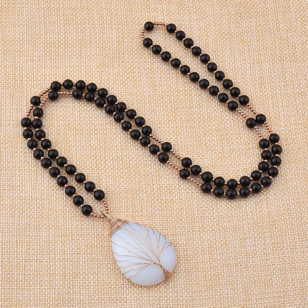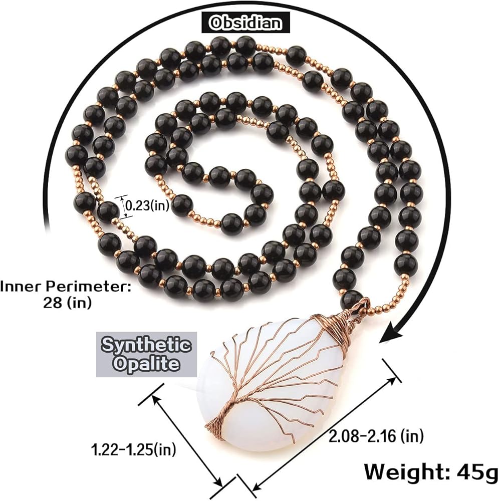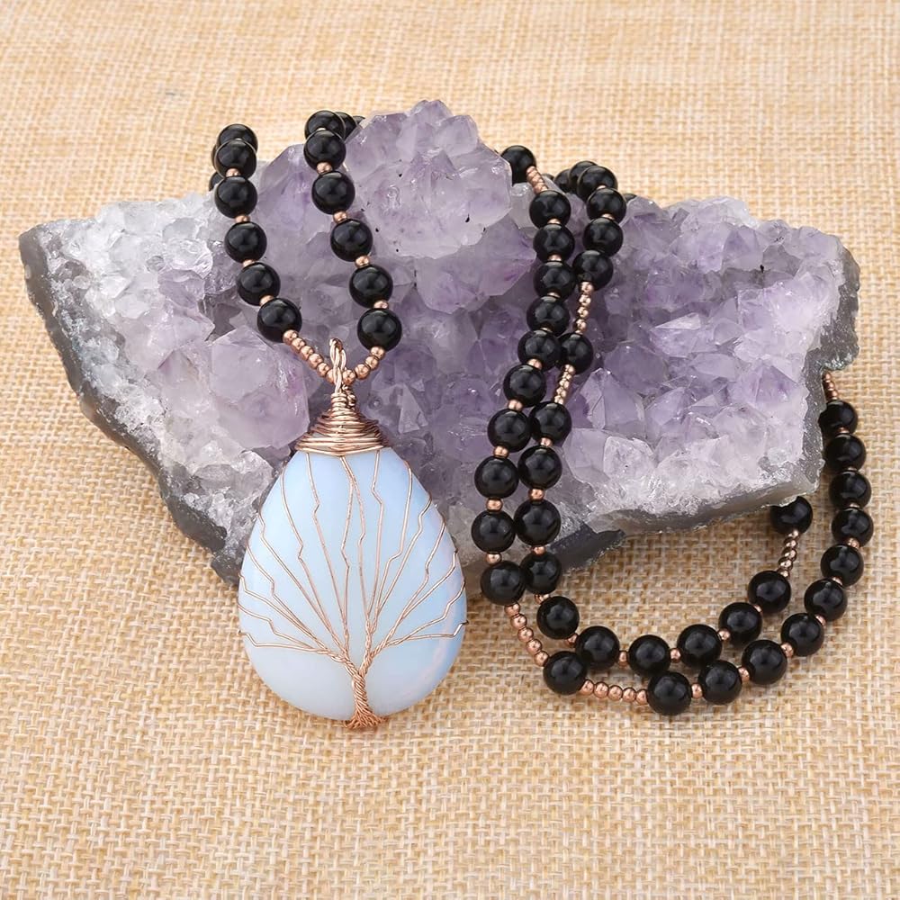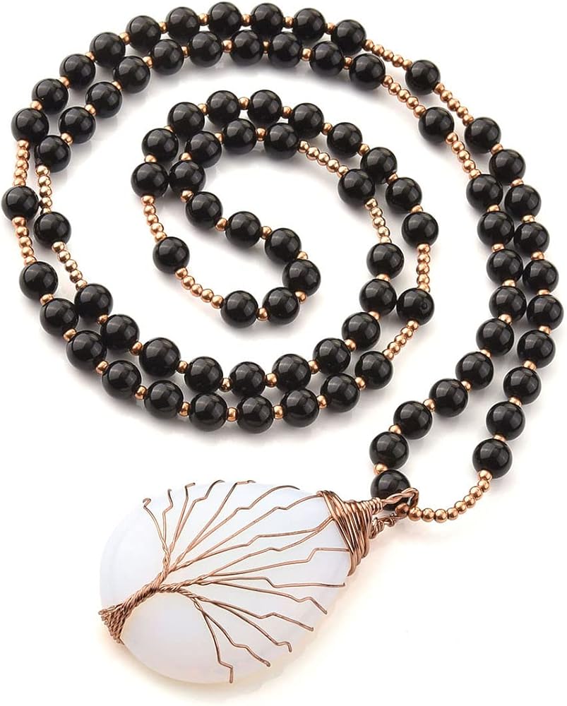 • Rose Quartz Mala Beads Necklace:Tree of life Wire Wrapped Rose Quartz teardrop Pendant Necklace Reiki Healing Crystal Stone Necklaces Natural Gemstone Quartz Jewelry for Women,Rose Quartz Tibetan Buddhist Prayer Beads Mala Buddha Meditation Necklace Healing energy yoga reiki Jewelry with in gift box for Men Women mum mothers day mom birthday gifts