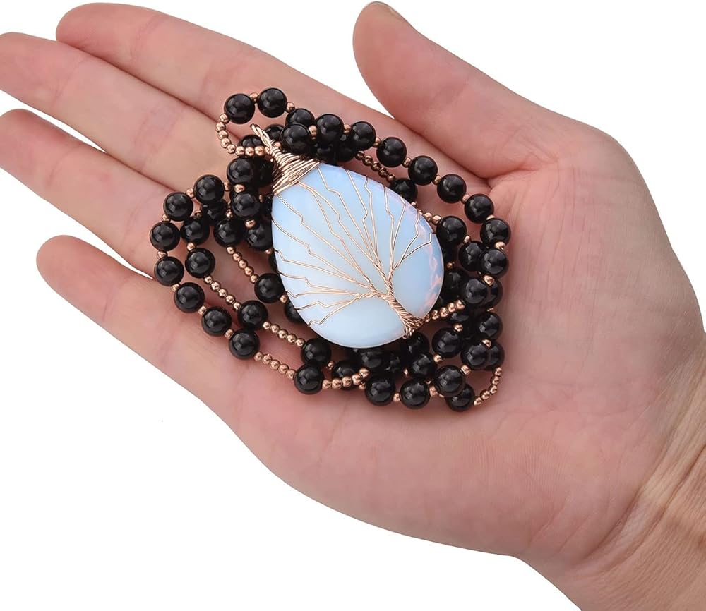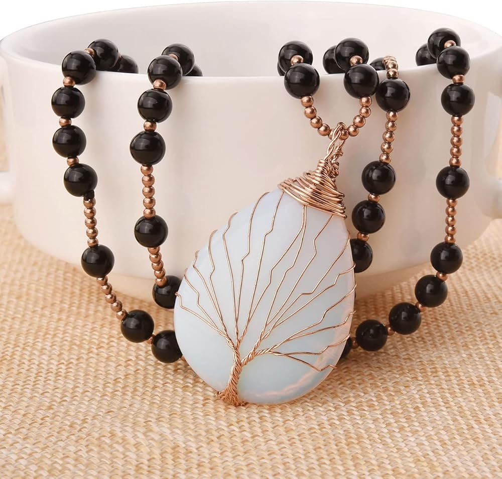 • 28" Length Healing Crystal Beaded Necklace:This combination of 6-7 mala beads and 2.08"-2.16"*1.22"-1.25 rose quartz crystal tree of life Pendant gives you deep sense of Positive Energy, Peace of Mind, Balance, Healing, Meditation, Protection from Evil Eye or Black Magic, Removes Negavite Energy,Success in Business or Studies, Unites Family and Friends.MAKES A THOUGHTFUL GIFT! It is gorgeous to wear and great as a gift.