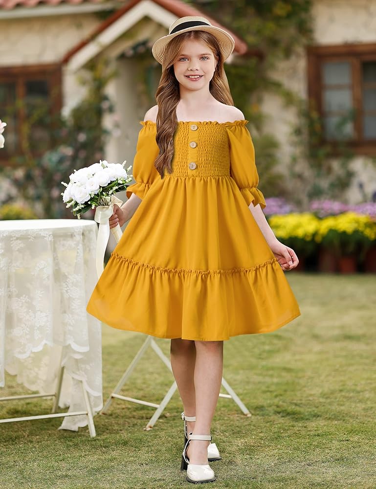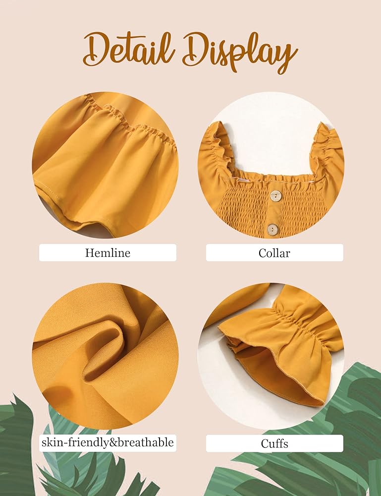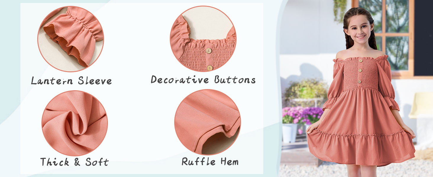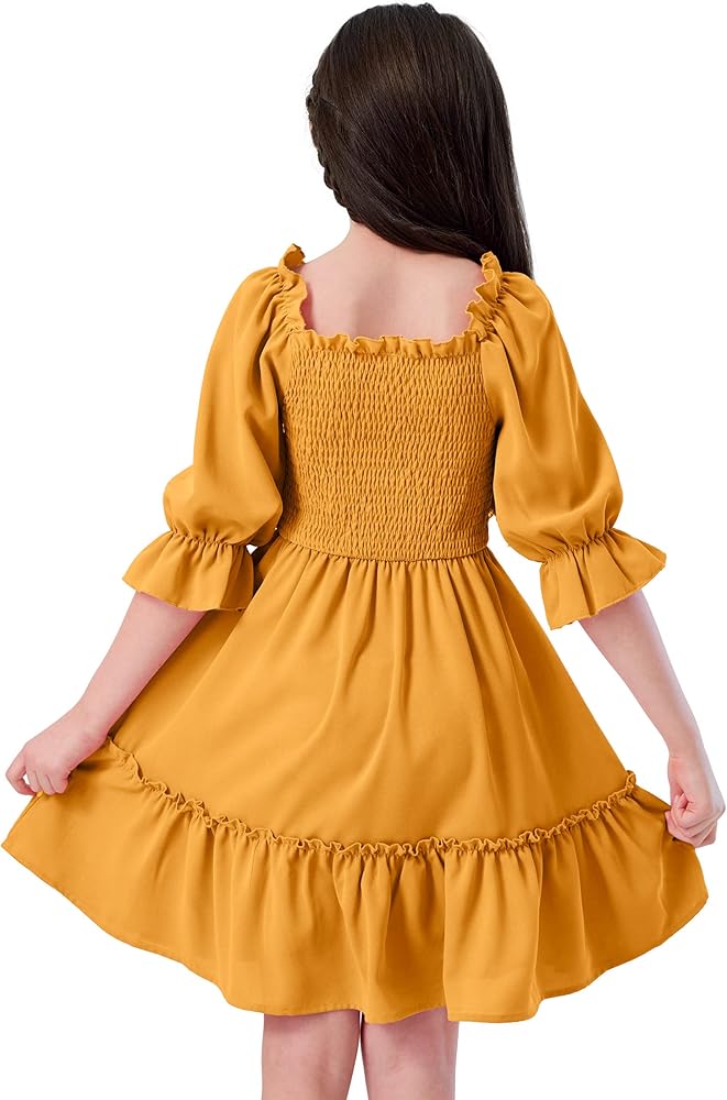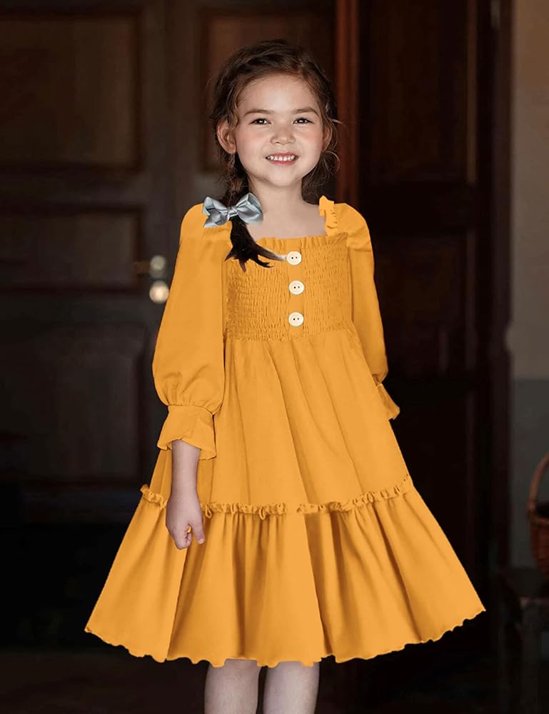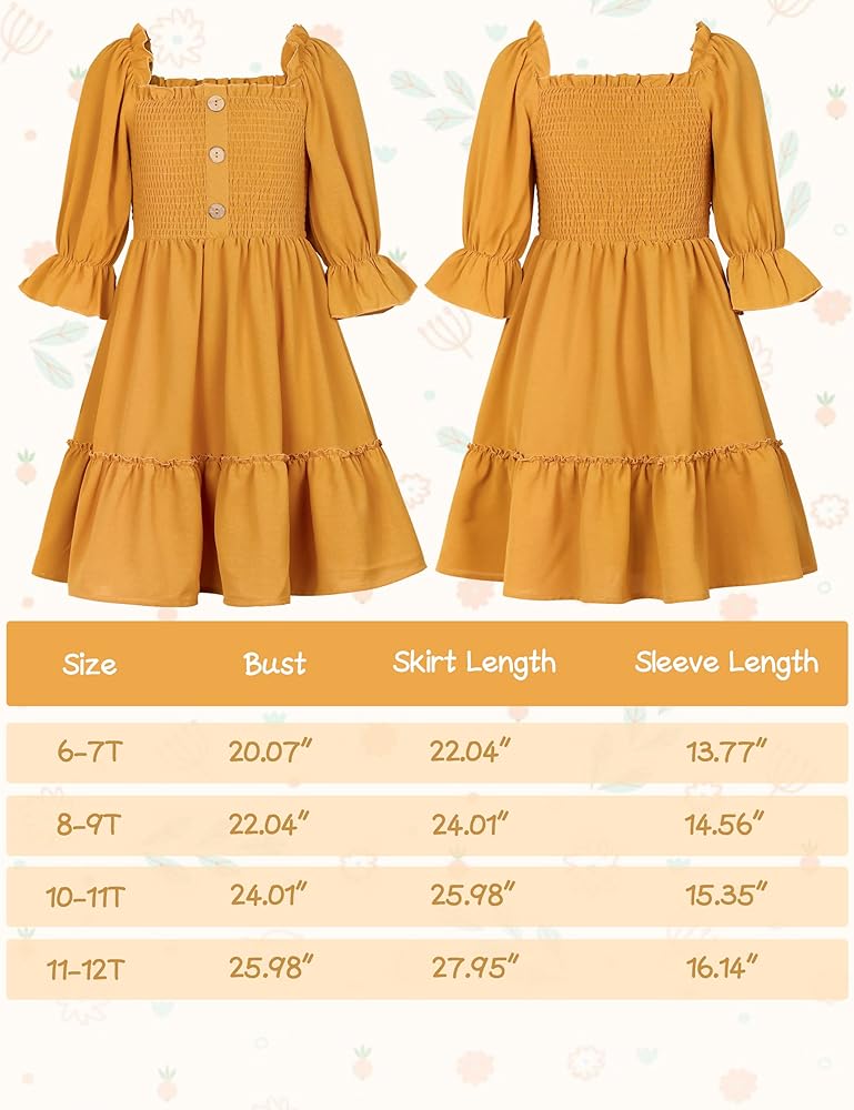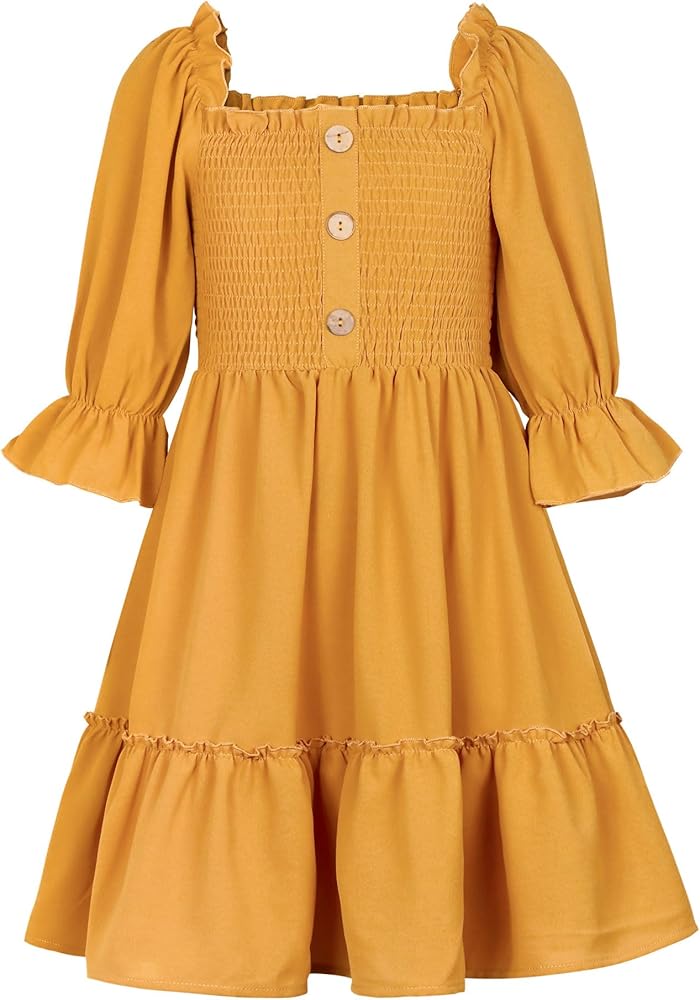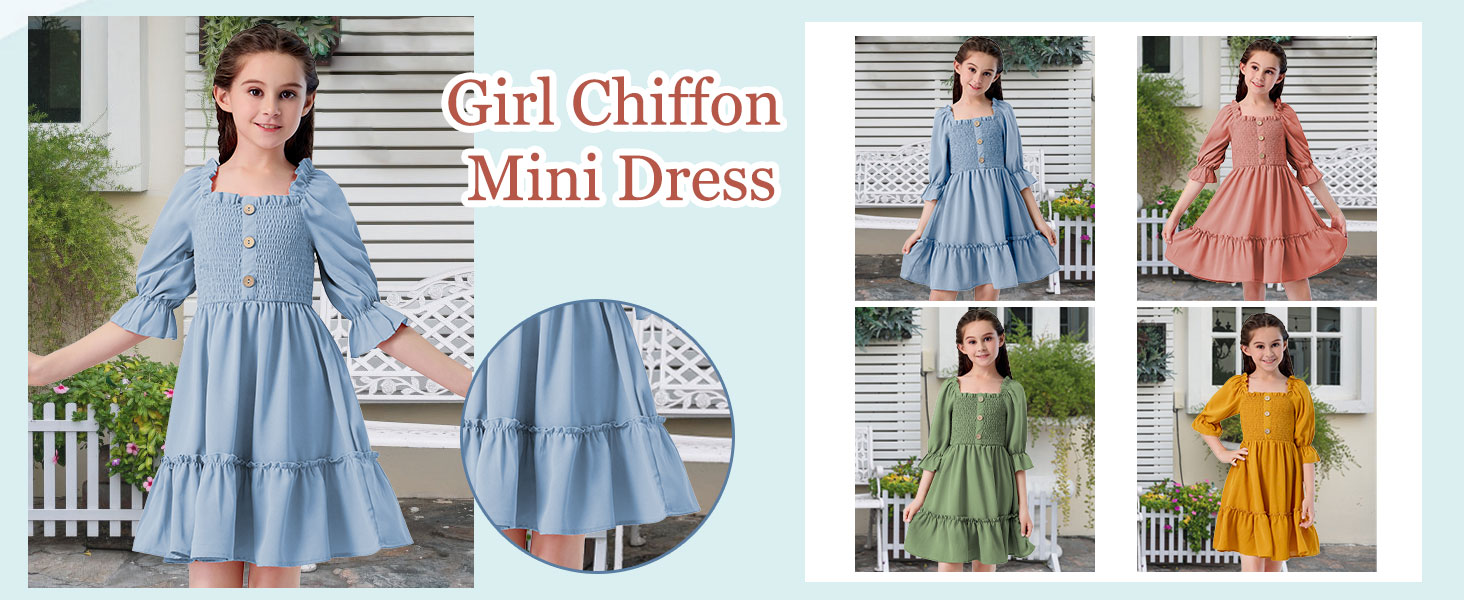 ☀ تصميم جميل: تتميز ملابس الفتيات هذه بخط عنق مربع ساحر ونصف كم. الجزء العلوي من الفستان مزين بقماش ومزخرف بأزرار، مما يعزز التصميم ويخلق مظهرًا فريدًا وملفتًا للنظر.