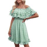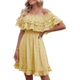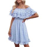 ❤التفاصيل: مقاس مريح، ياقة مربعة، بدون أكتاف، خط عنق على شكل قلب، خصر قصير، خصر مرن عالي، كم قصير، خط على شكل حرف A، زخرفة مكشكشة، طراز جميل، فستان قصير من الشيفون العتيق.