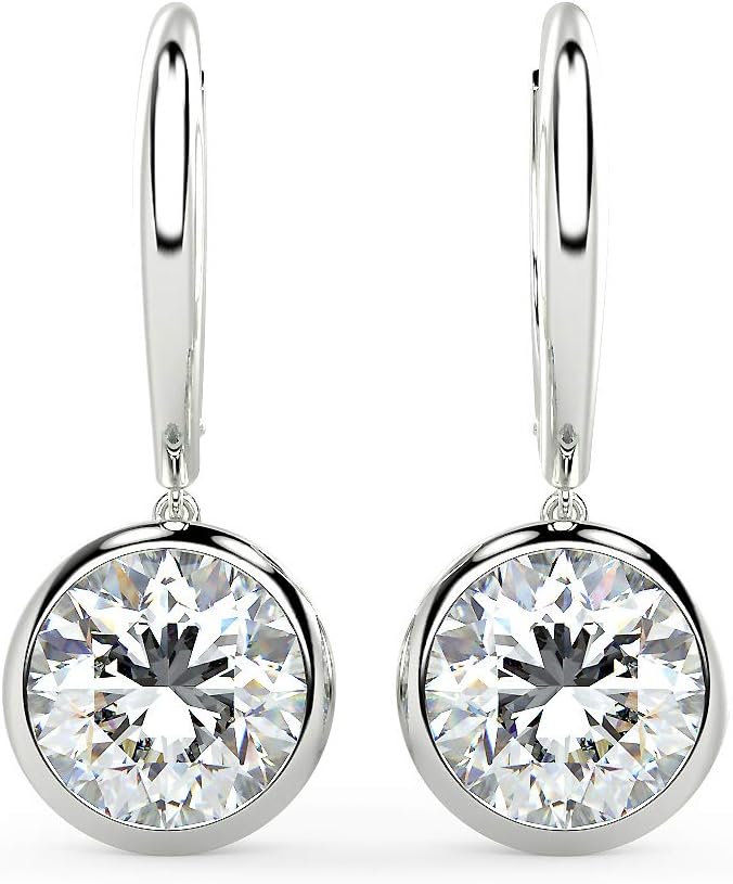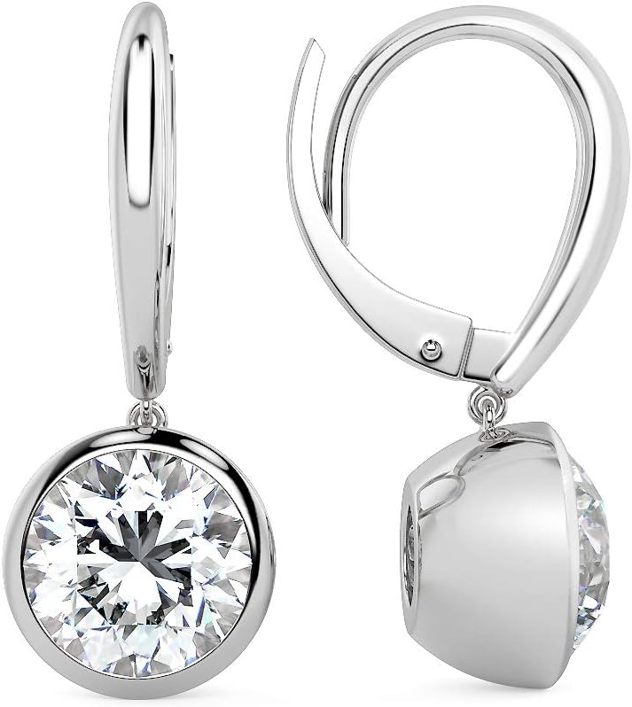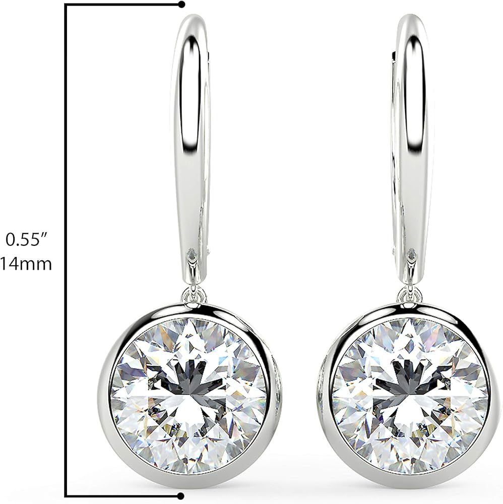 REFINED BEAUTY - Enhance your style with these exquisite round lab grown diamond dangle drop earrings in 14k rose gold. Each earring features a stunning 14mm diameter lab-grown diamond, securely bezel-set to maximize its brilliance. These diamonds boast a captivating G-H color and impressive VS1-VS2 clarity, with a combined carat weight of 0.50 cttw. The leverback design combines comfort with sophistication, allowing these marvelous earrings to gracefully sway with your every move