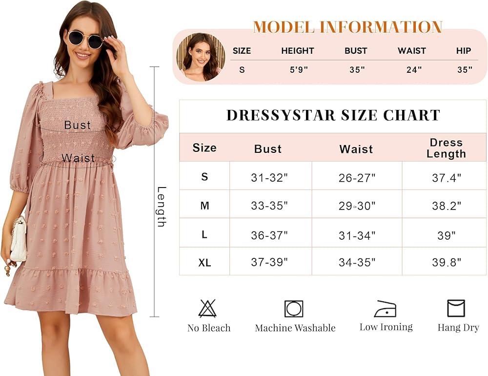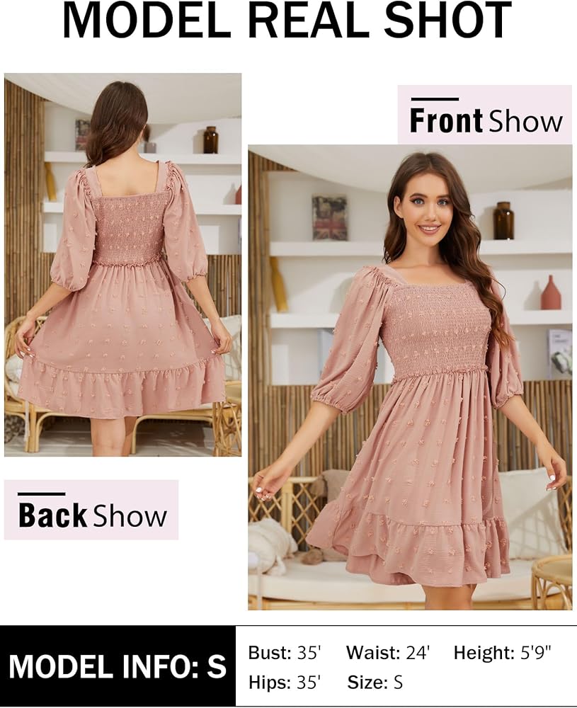 【FEATURES】A-line Design, Flatter Your Body Shape and Fashion Taste. Square Neck, Lantern Sleeve, Shirred back, Which Makes You a Chic and Elegant Style. The Beautiful Solid Color Style and Novel Swiss Dot and Elegant Flowy Ruffle Hem Design is Flattering and Cute Will Save You Time for Styling Before Going Out and Will Easily Provide You with a Perfect Look