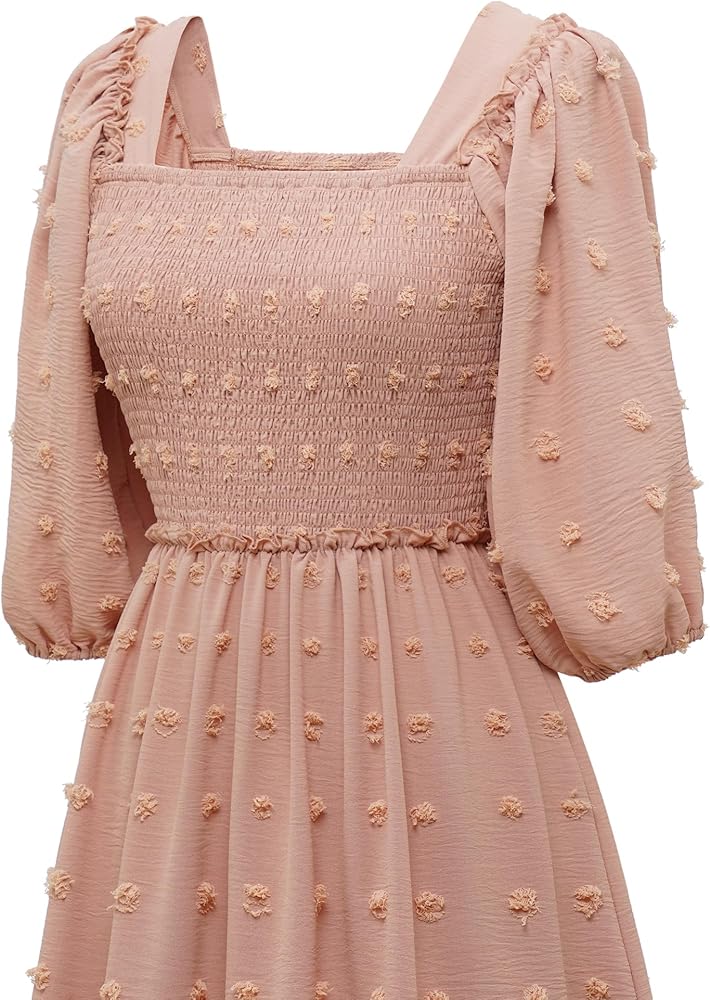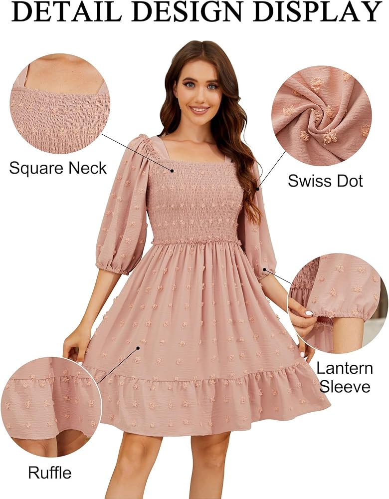 Elegant dresses for women 2023 casual trendy, suitable for different ages and occasions. 94% nylon+6% spandex, The High-Quality material Makes the square neck dress fluffy and soft, comfortable and skin friendly. The decent thickness bring you Cosy And Perfect Wear Experience In Various Temperatures. Square Neck, Lantern Sleeve, Smocked, Swiss Dot Flowy, Ruffle, casual dresses for women 2023 trendy. Whether pair with necklace or sandals, or handbag, heels, This dress will create any look. Wear it with sandals for a casual vibe or throw on heels for date night. This dress absolutely is your Must-Have in your wardrobe for all season.