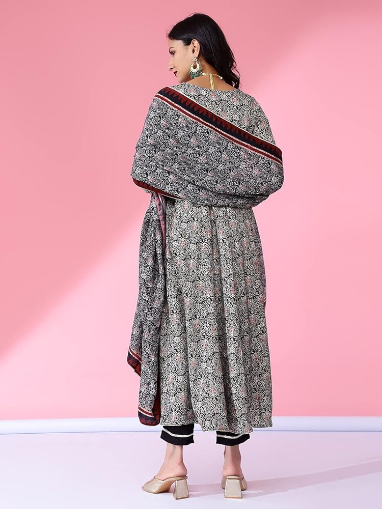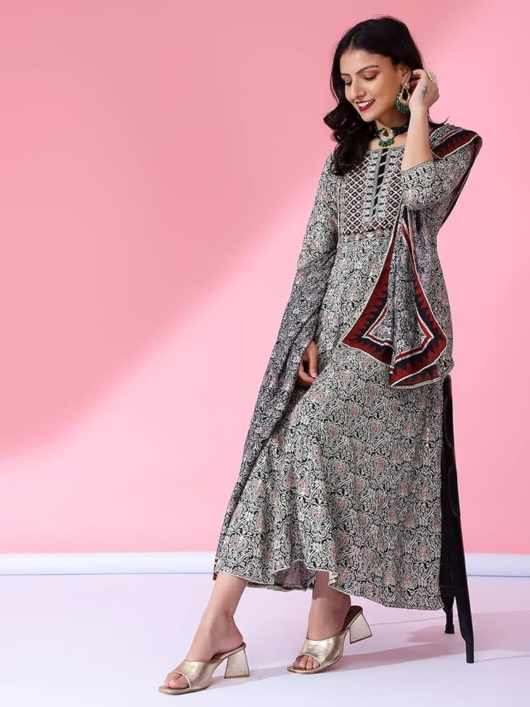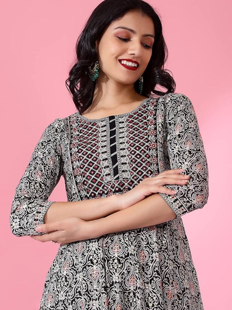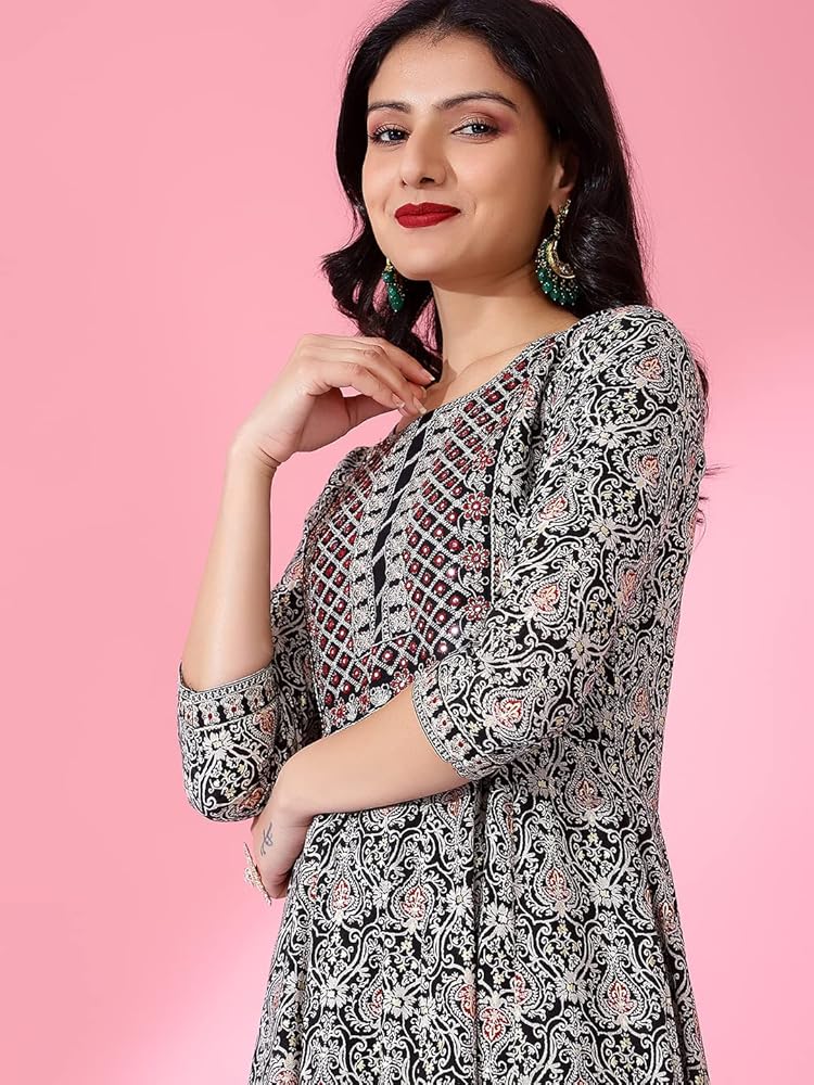 ETHNIC INDIAN KURTA SET: Luxurious rayon fabric is carefully selected for its softness and breathability, ensuring a comfortable and elegant wearing experience. Our Indian kurti pant set with dupatta epitomize elegance with intricate embroideries and tailored silhouettes, enhancing your style effortlessly.