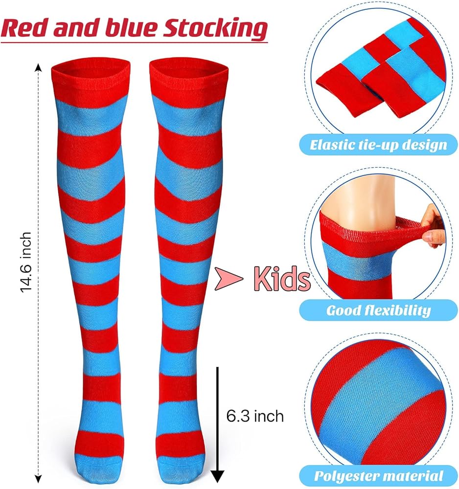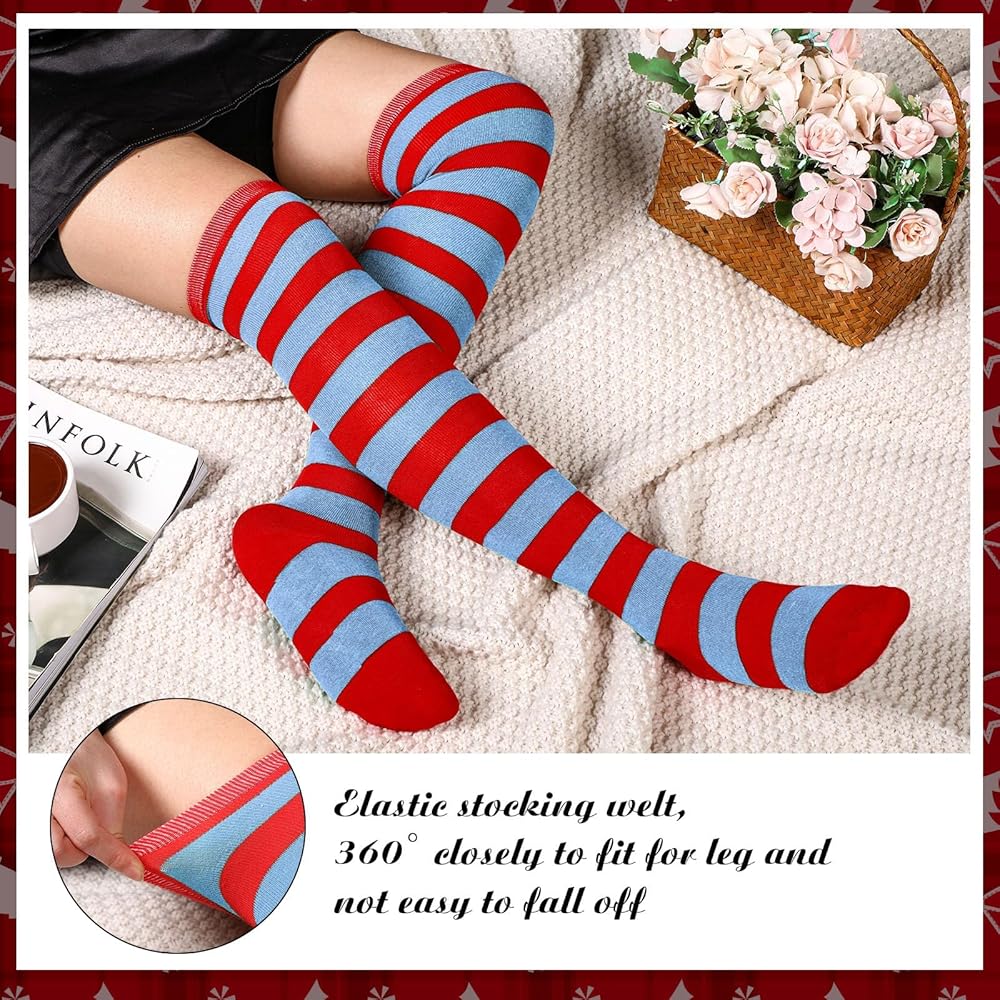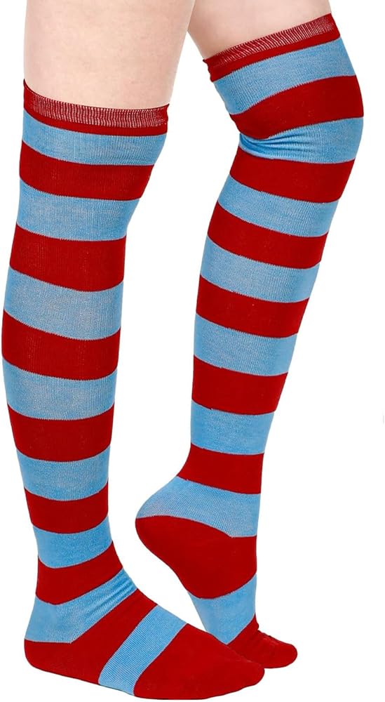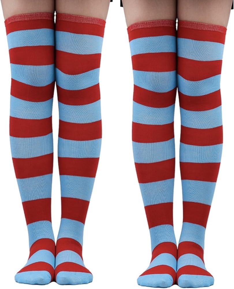 Blue and Red Striped Long Knee Thigh High Striped Socks Tight for Women and Kids