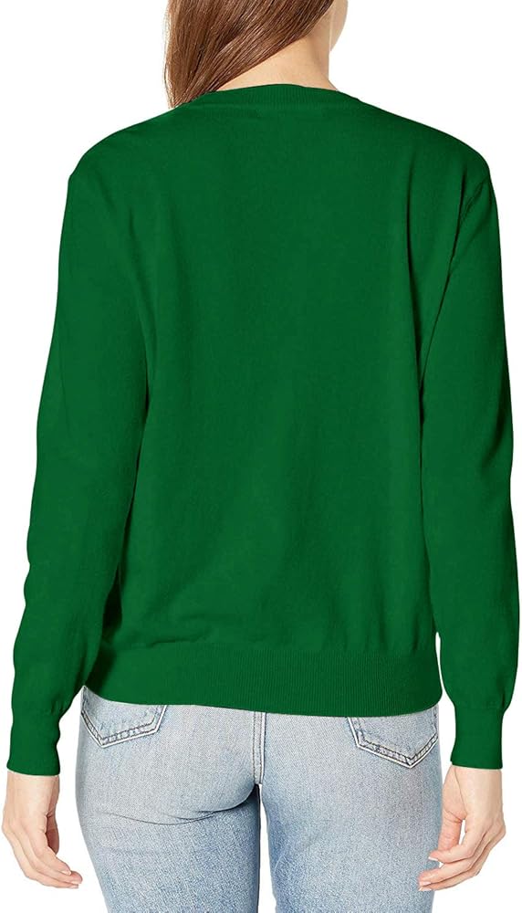 سترة QUALFORT النسائية ذات الرقبة المستديرة باللون الأخضر وسترات محبوكة ناعمة أساسية باللون الأخضر مقاس X-Large