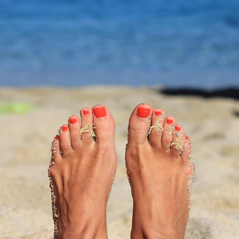 تصميم أساسي بسيط بنمط كلاسيكي عتيق، لا تنتهي موضته أبدًا، اختيار رائع لمجوهرات القدم في هاواي. مجموعة متنوعة من الأنماط المختلفة للخواتم المفتوحة عند الأصابع بألوان ذهبية، لا تنتهي موضتها أبدًا. جميع حلقات أصابع القدم مصنوعة يدويًا من سلك نحاسي مقاوم للبهتان عالي الجودة، خفيفة الوزن ومتينة، لا تبهت أو تصدأ.