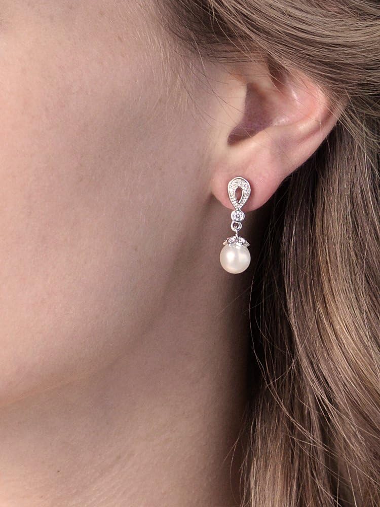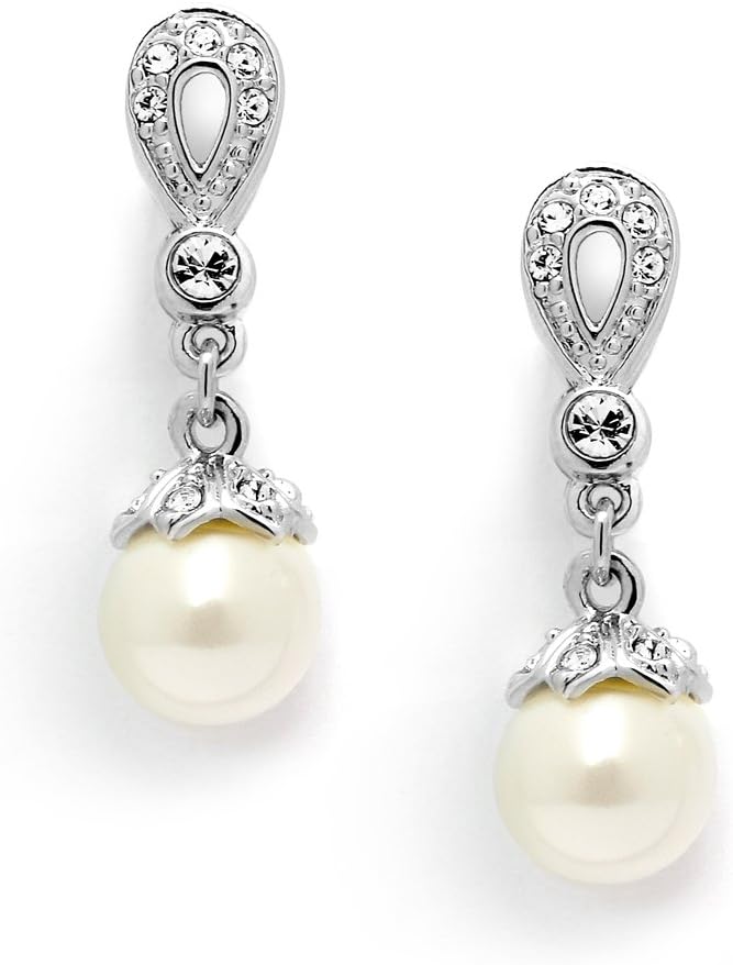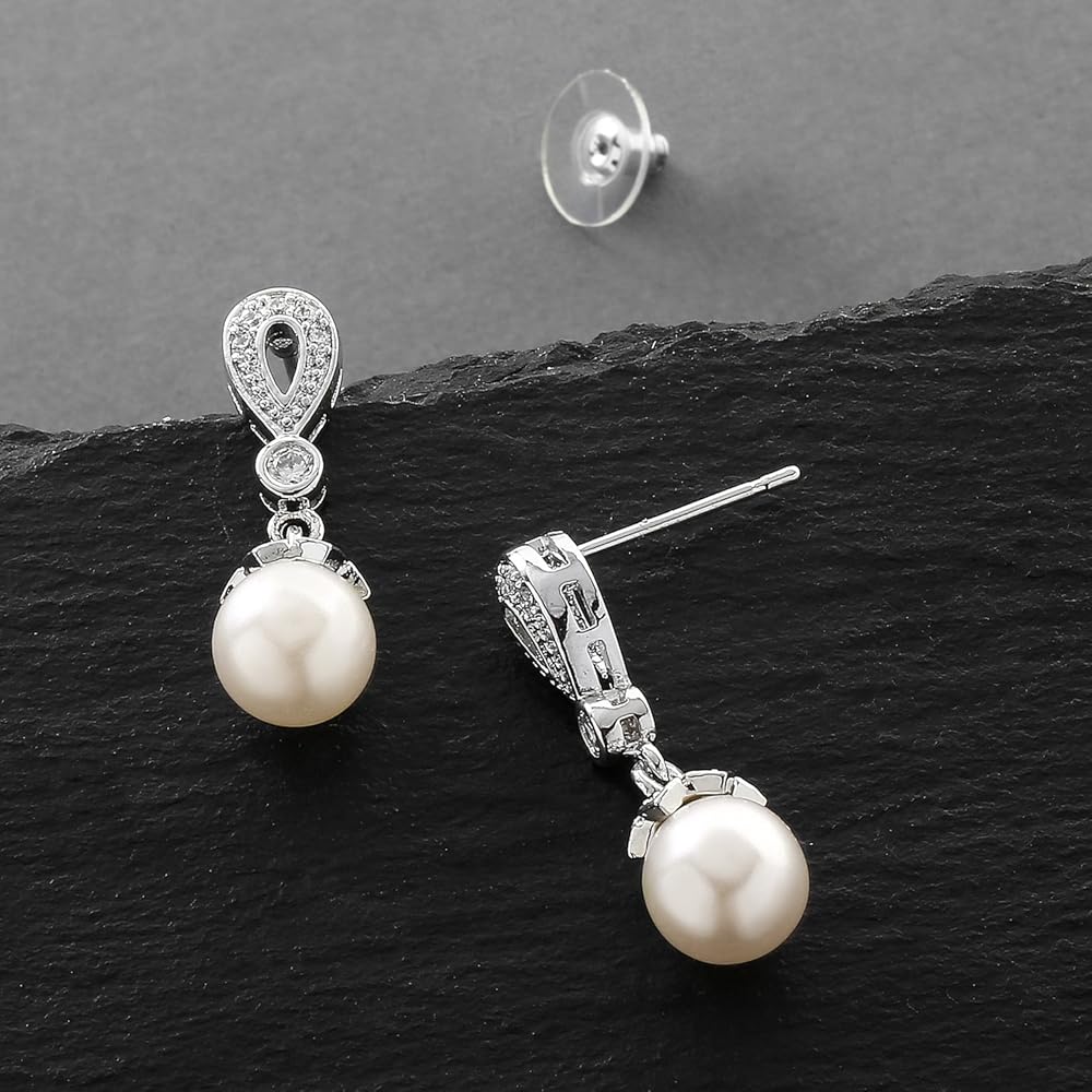 أقراط Mariell Vintage CZ واللؤلؤ العاجي للزفاف أو الزفاف مطلية بالفضة الأصلية والبلاتين