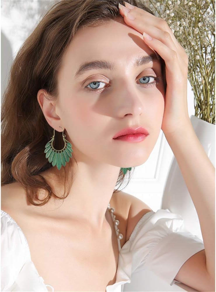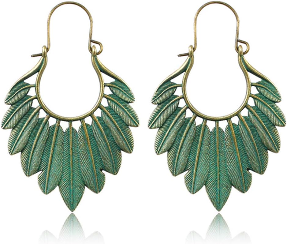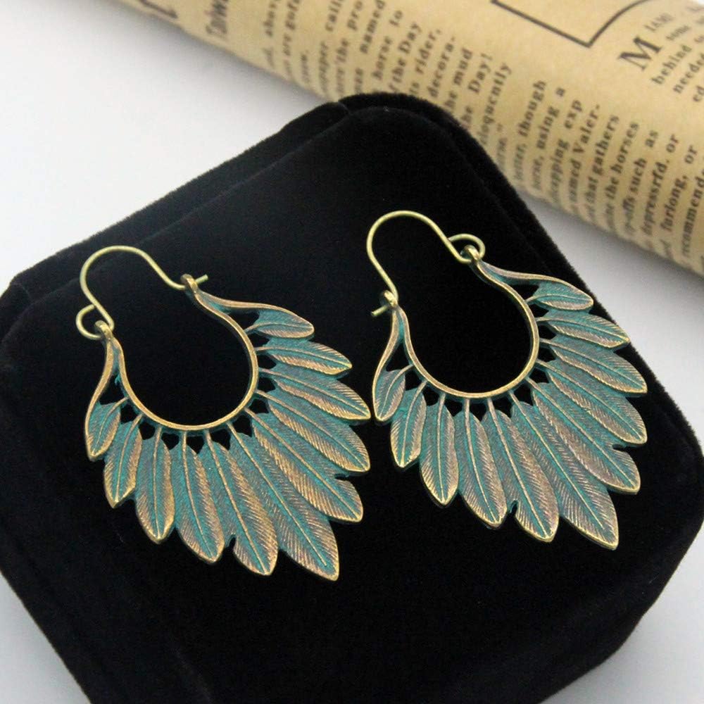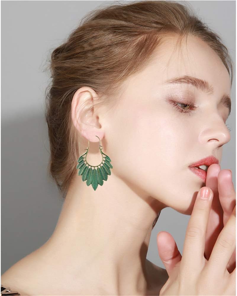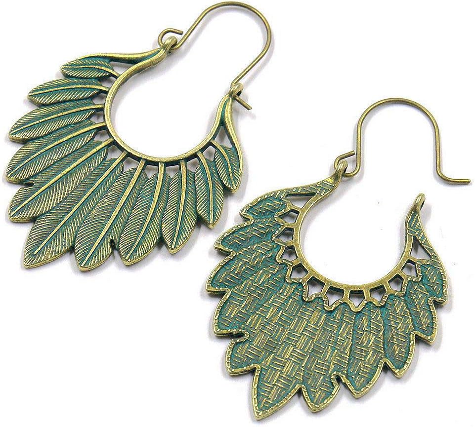 اليدوية بوهو خمر البرونزية الخضراء الجوف خفيفة الوزن بيان ليف هوب الأقراط مع نسيج مفصل القبلية العرقية قطرة تتدلى القرط للنساء