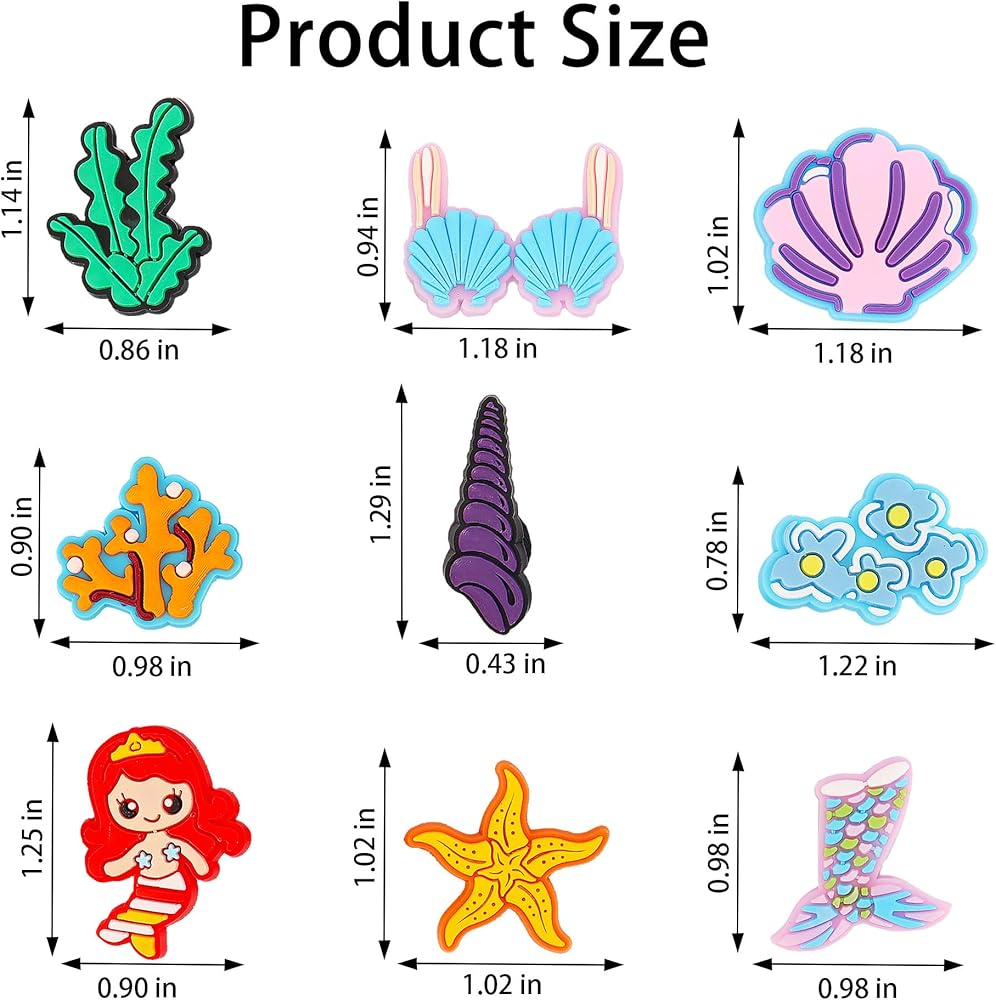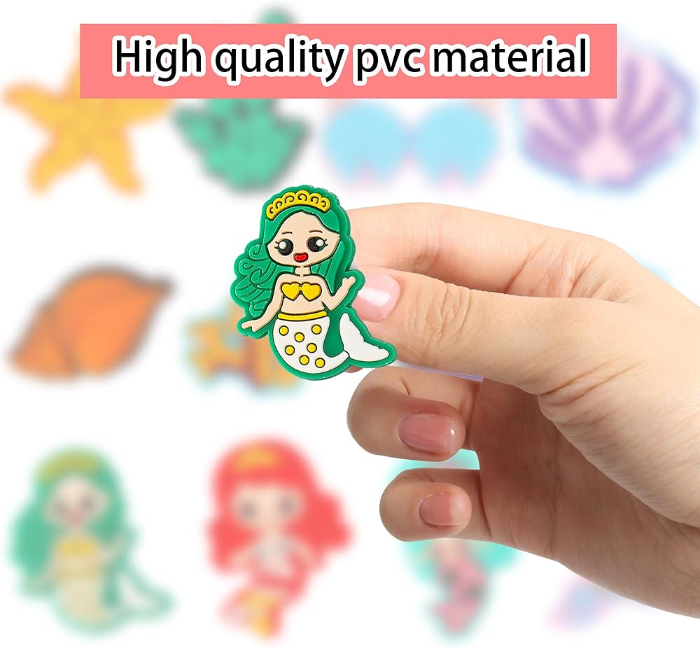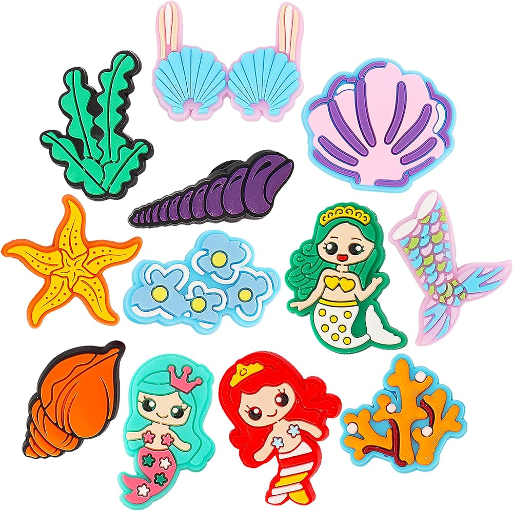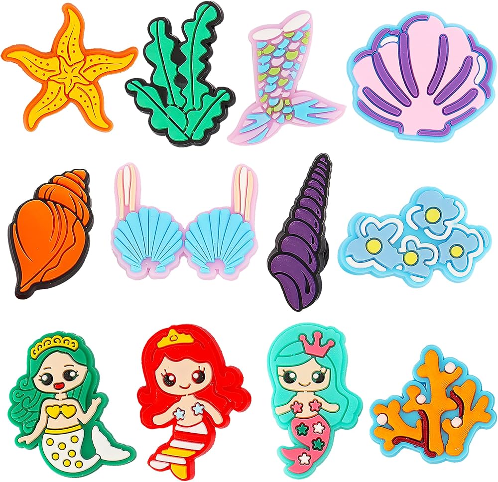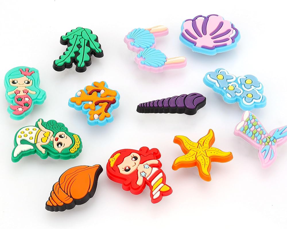 • تعليقات بنمط حورية البحر: تتضمن العبوة 12 قطعة من تعليقات الأحذية بأشكال حورية البحر اللطيفة والرائعة، هذه التشكيلات المتنوعة والحلي اللطيفة والمثيرة للاهتمام هي الديكورات المثالية للأحذية.