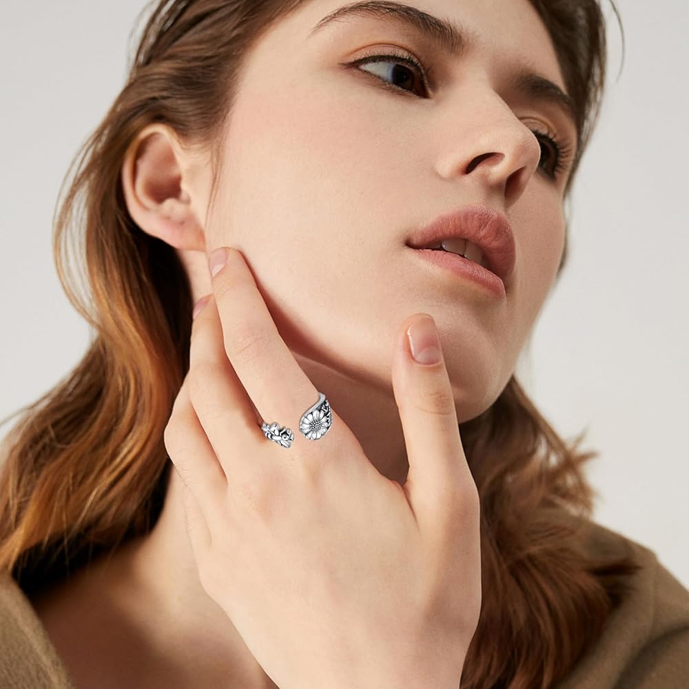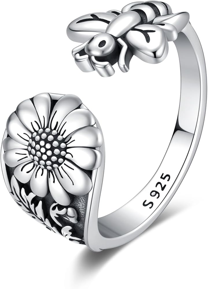 【تصميم خواتم عتيقة】 تأخذ هذه الحلقات شكل ملعقة وتجمعها مع نمط النحلة والزهرة لإنشاء حلقة فريدة من نوعها. ارتداء هذا الخاتم الفضي S925 ذو التصميم الفريد يجعل الأشخاص يتمتعون بمزاج أنيق فريد ونبيل