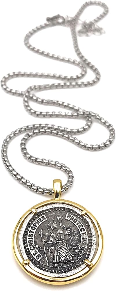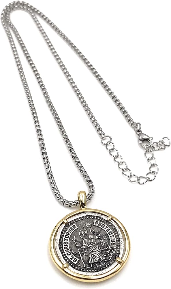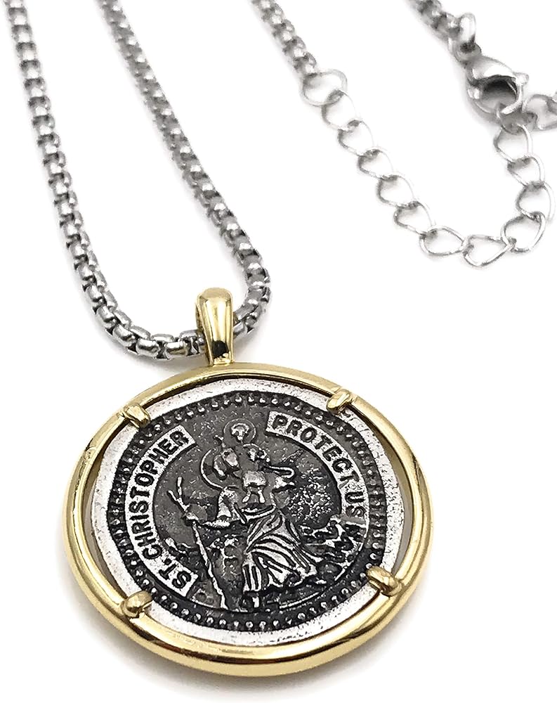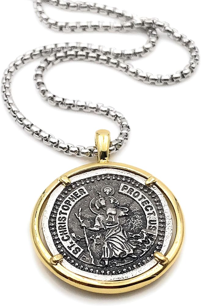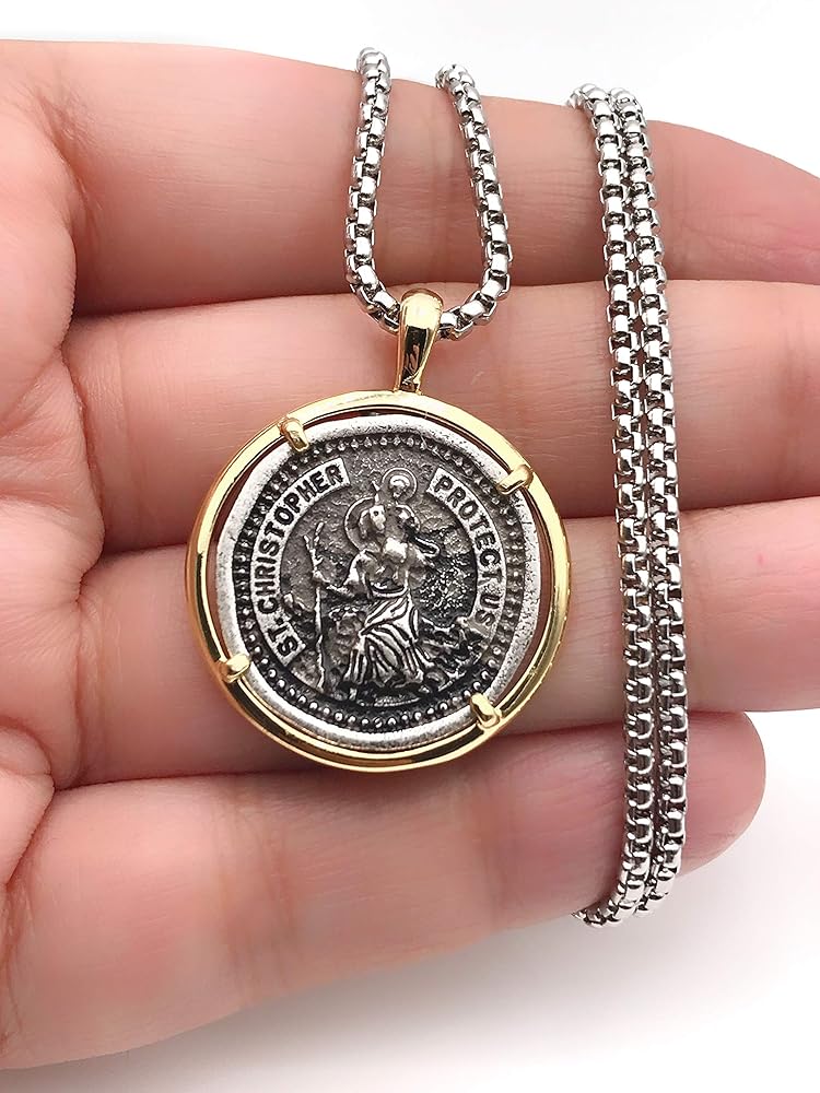 ليزلي بولز عقد بميدالية سانت كريستوفر فينتاج للرجال بطول 22 انش، مجوهرات حماية