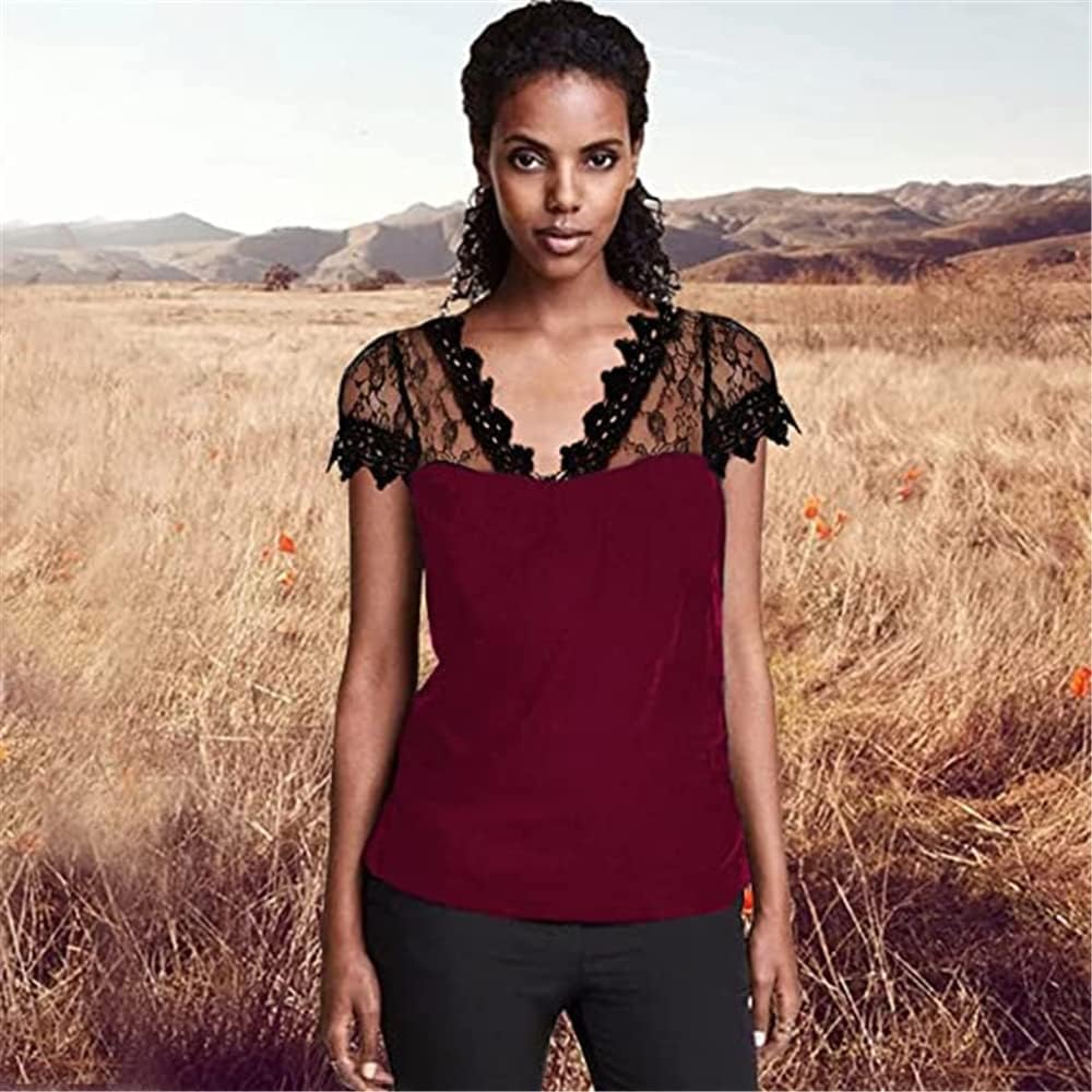 These features included in this T-shirt: V-neck,Lace and Mesh Design,Lace Short Sleeve