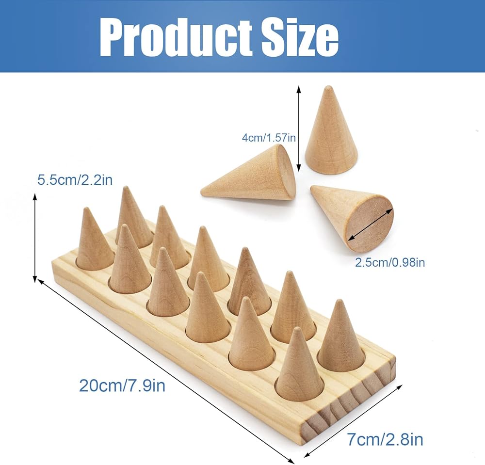 LIOUCBD 12 Fingers Wood Ring Display Stand Cone Ring Holders, Jewelry Display Holder Showcase, Ring Bracelet Organizer for Girls Women Jewelry Display DIY Crafts