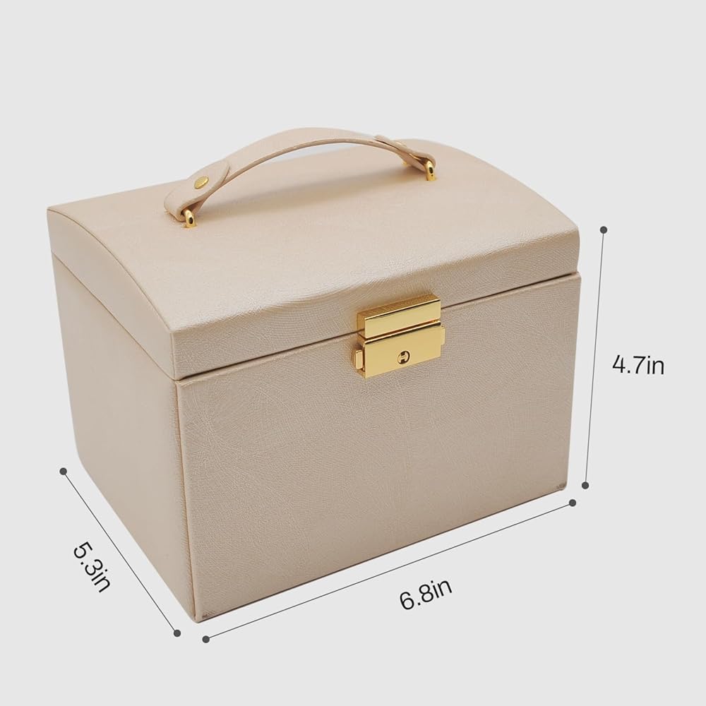 ⛑ [حرفية ممتازة]: مصنوع من مواد عالية الجودة بما في ذلك جلد البولي يوريثان الفاخر، واللوح الليفي متوسط الكثافة (MDF)، وبطانة مخملية ناعمة باللون البيج، صندوق المجوهرات هذا يمثل شهادة على الجودة والمتانة والتصميم الدائم.