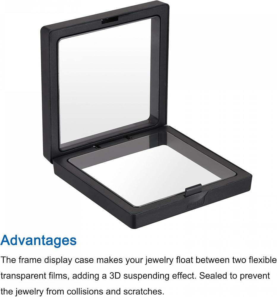 • The frame display case makes your jewelry float between two flexible transparent films, adding a 3D suspending effect. Sealed to prevent the jewelry from collisions and scratches.