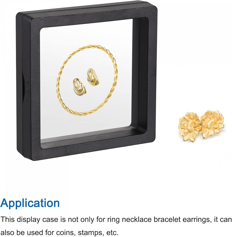 The frame display case makes your jewelry float between two flexible transparent films, adding a 3D suspending effect. Sealed to prevent the jewelry from collisions and scratches. This display case is not only for ring necklace bracelet earrings, it can also be used for coins, stamps, etc.